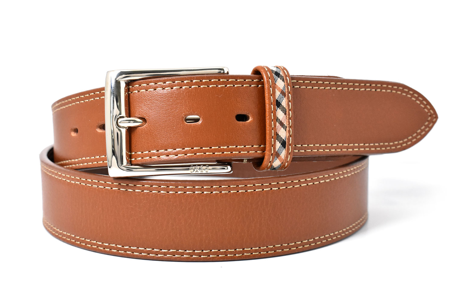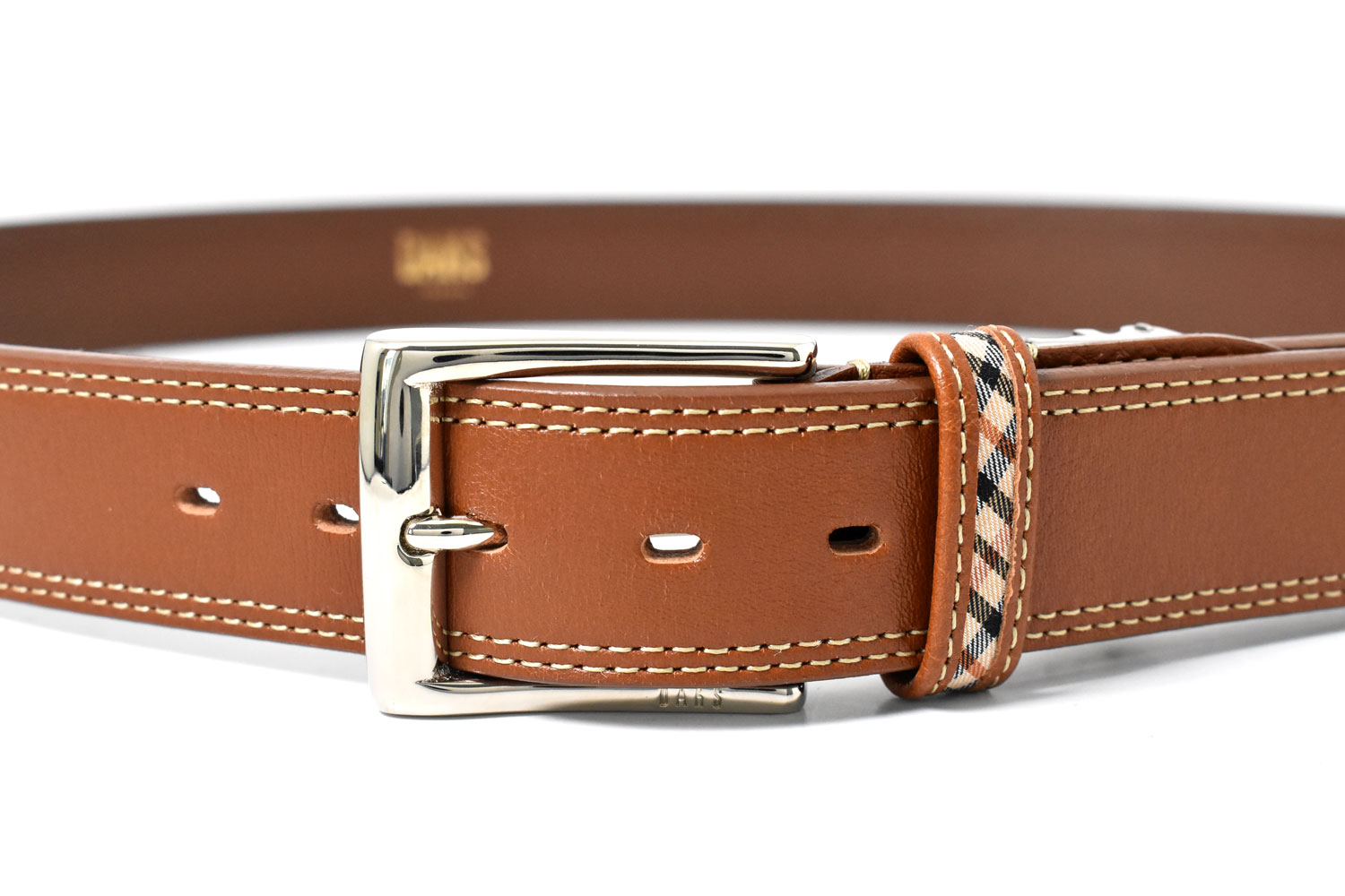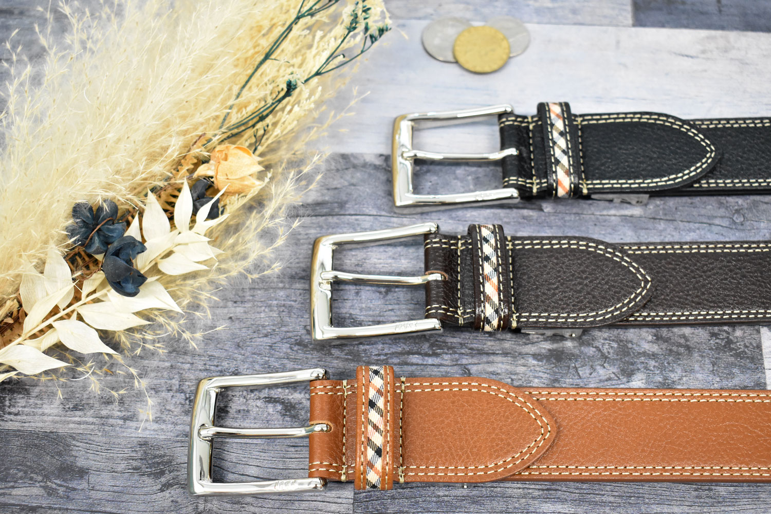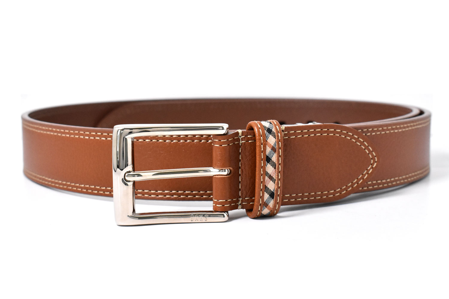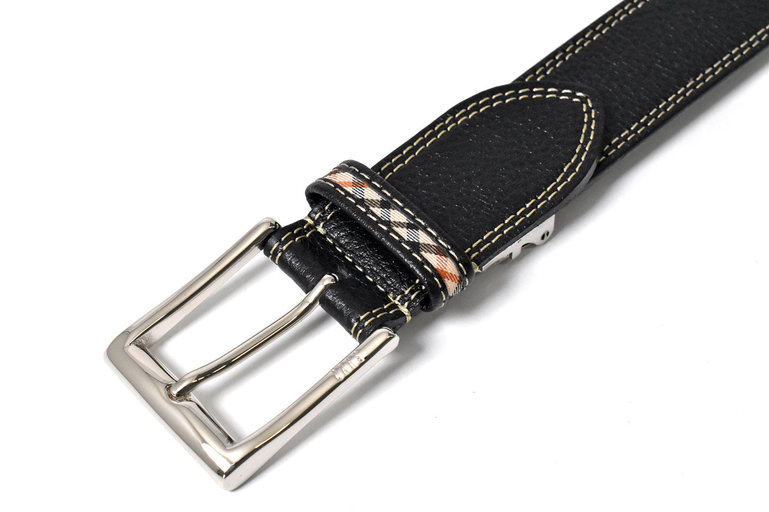 ループにハウスチェックをあしらった3.3cmの少し幅広なカジュアルベルト。