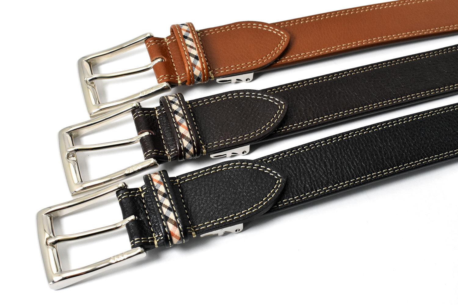 33mm幅の少し幅広カジュアルベルト。ダブルステッチを施したカジュアルなデザイン。