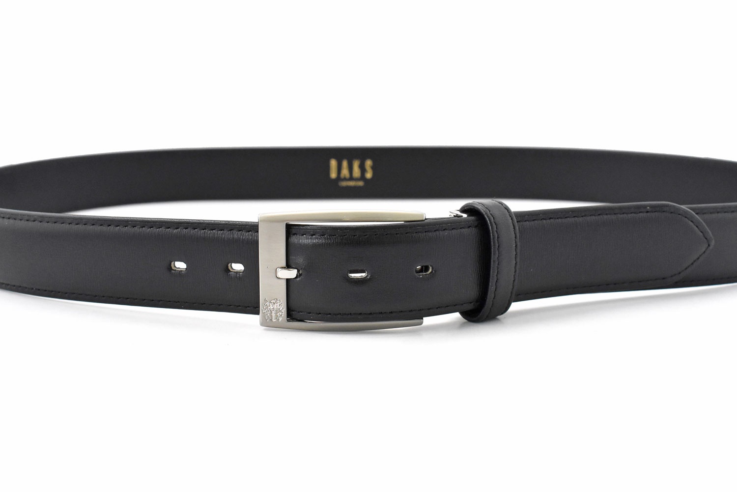 バックルにはダックスの紋章が刻印されています。「この紋章は1969年に考案され、後に王室直属の機関である紋章院(College of Arms)に正式に登録されています。」(参考:https://daks-japan.com/catalogue/2011history/#page=15)