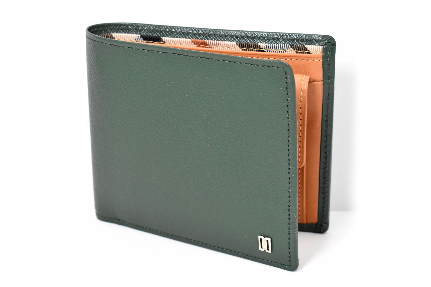 美しく輝く上品な光沢を放つエンボス革を使用、内作りには革本来の持つ力強い存在感をそのまま表現した植物タンニン仕上げのヌメ革を使っています。遊び心を演出するハウスチェックのカード段。気品溢れる表のDDロゴがアクセントになっています。