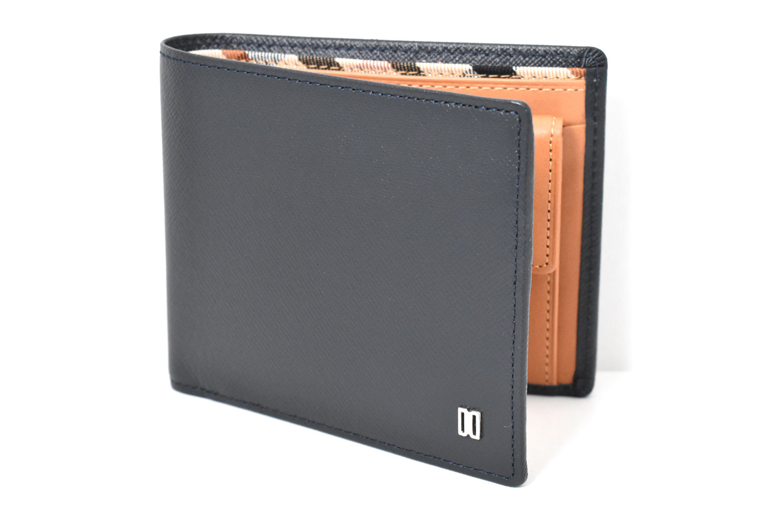 カード段の一部、札室の仕切りにはダックス伝統のハウスチェック柄の生地を使用。さりげない隠れたおしゃれを演出しています。