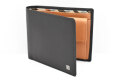 長く愛されている定番の二つ折り札入れ。お札、硬貨、カードすべて入るオールインワンのアイテムです。札室には仕切りを設けて仕分けが可能に。小銭室は仕切りがなく、大きく開いて小銭の出し入れをスムーズにしています。