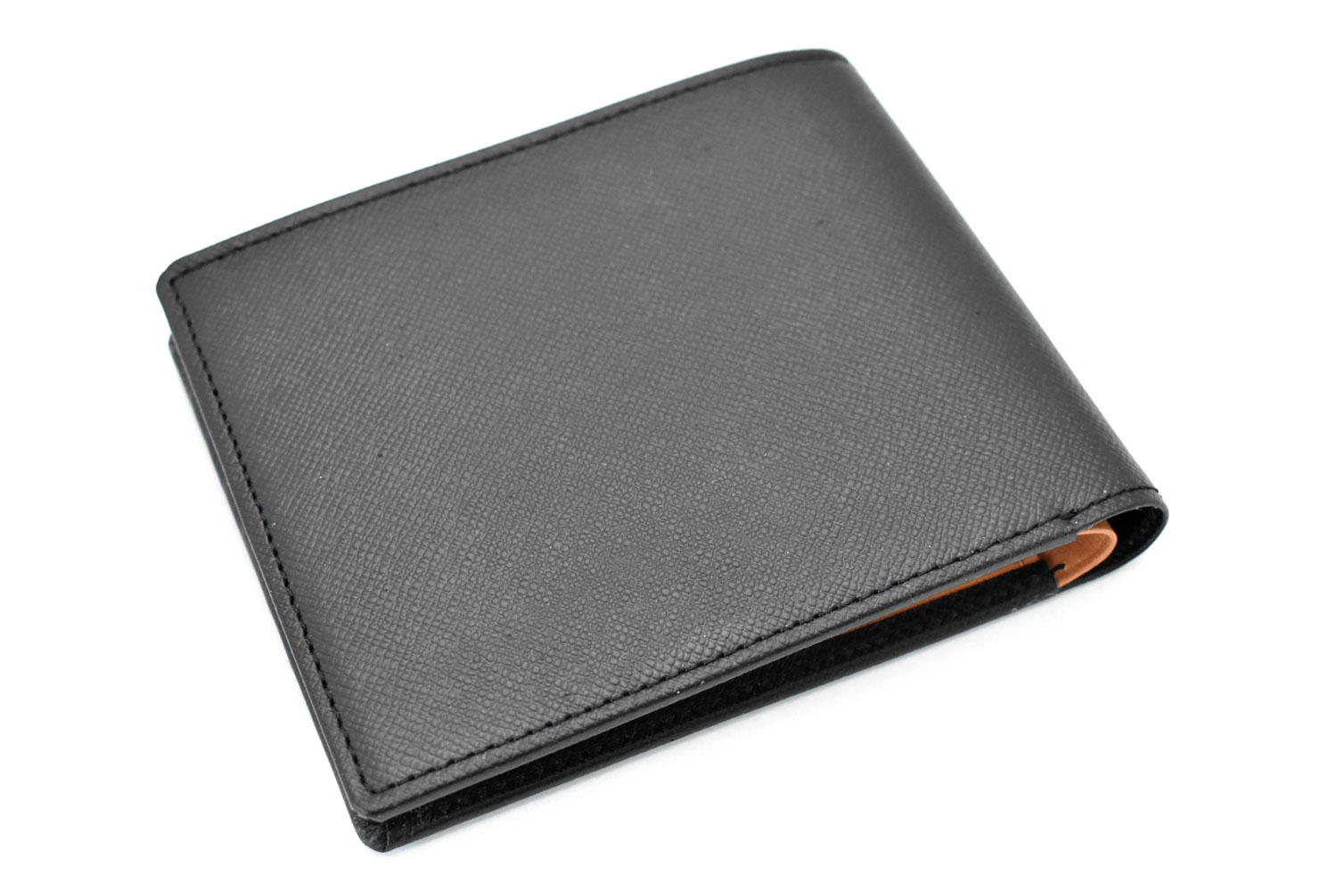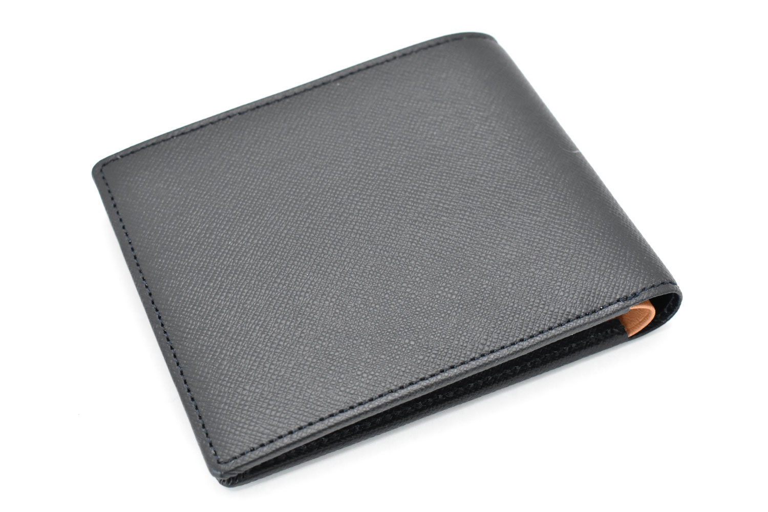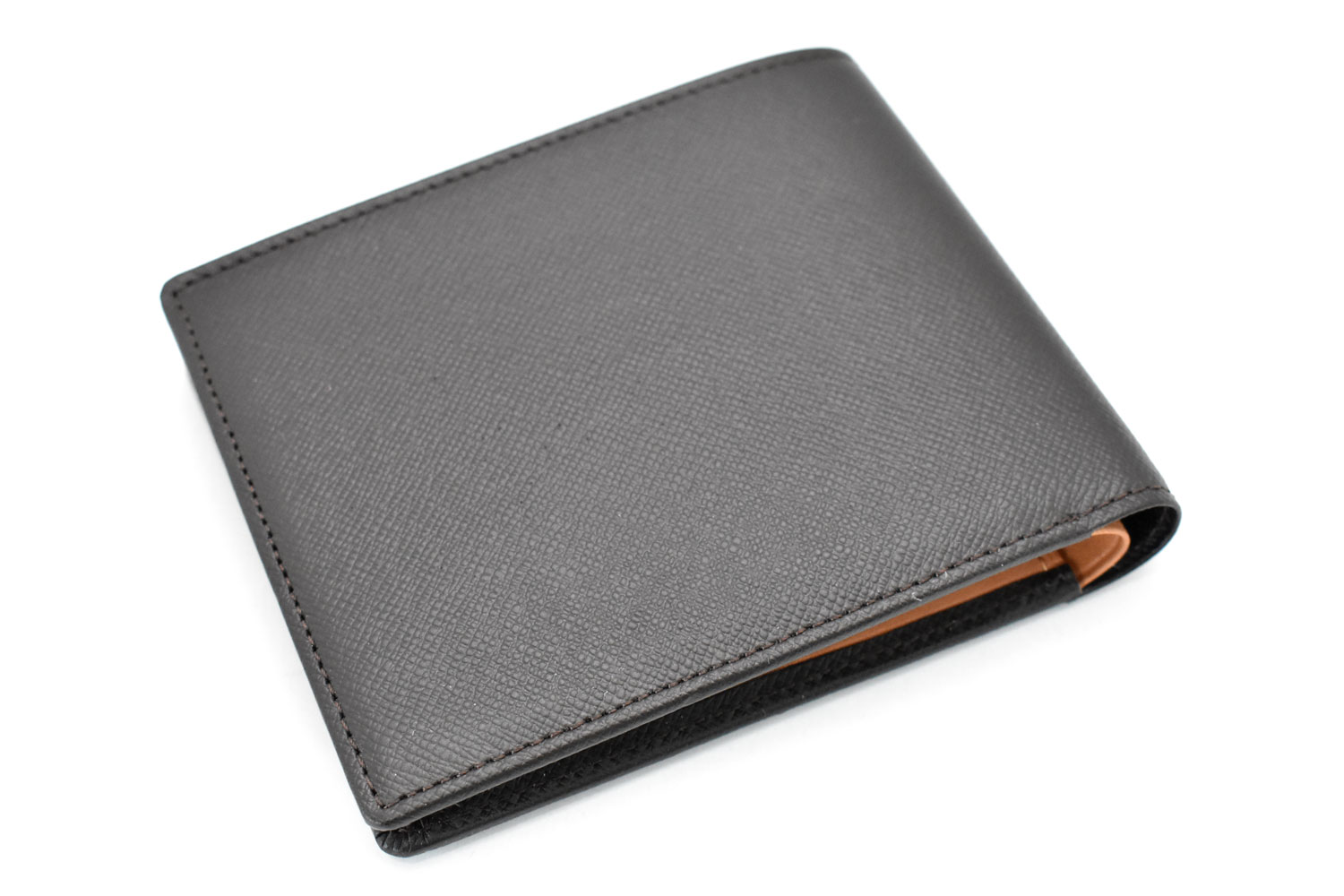 ジャケットやパンツのポケットにスッキリ収まる薄型財布。小銭入れが付いていない、薄くてかさばらない二つ折り財布です。