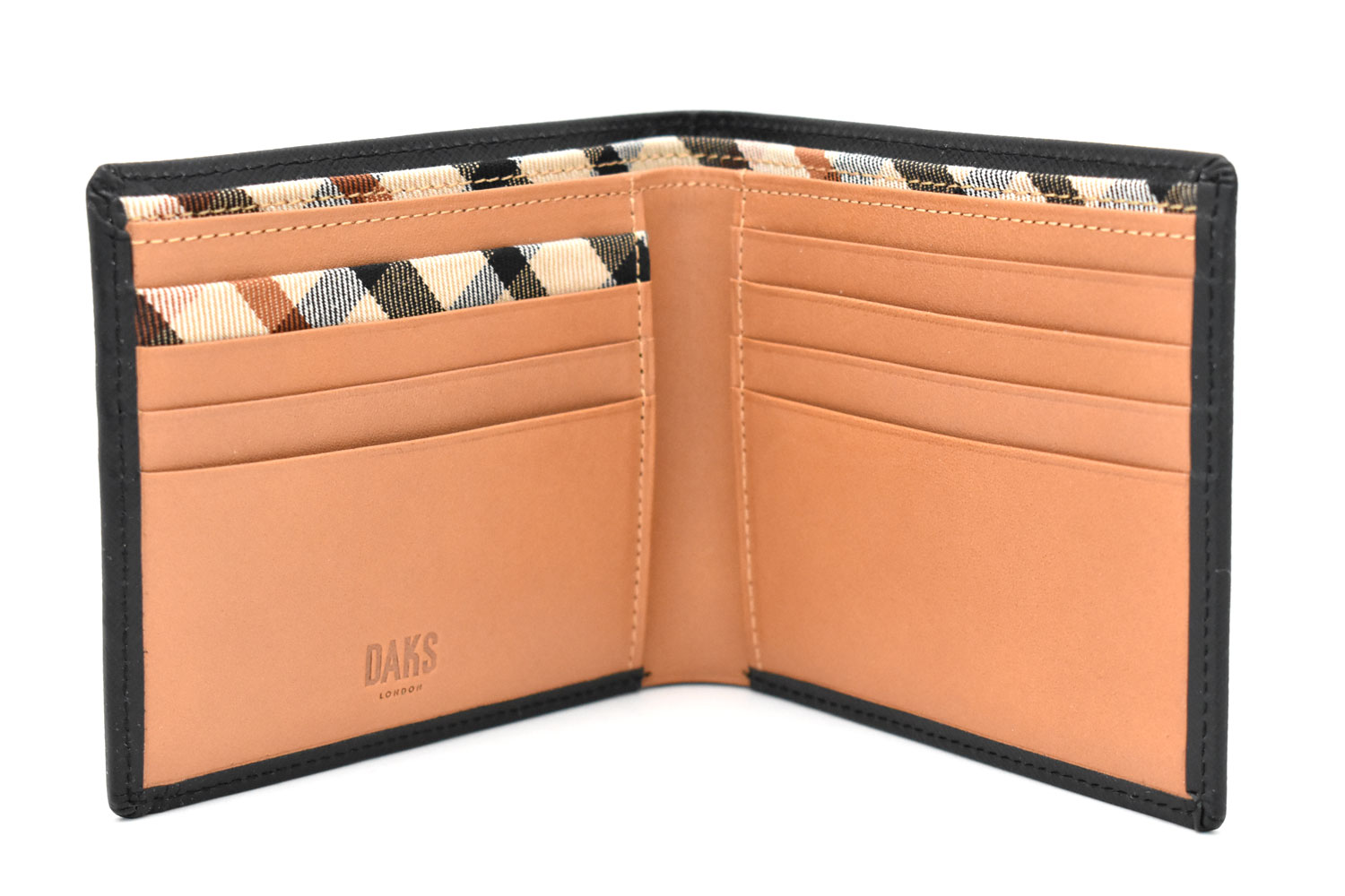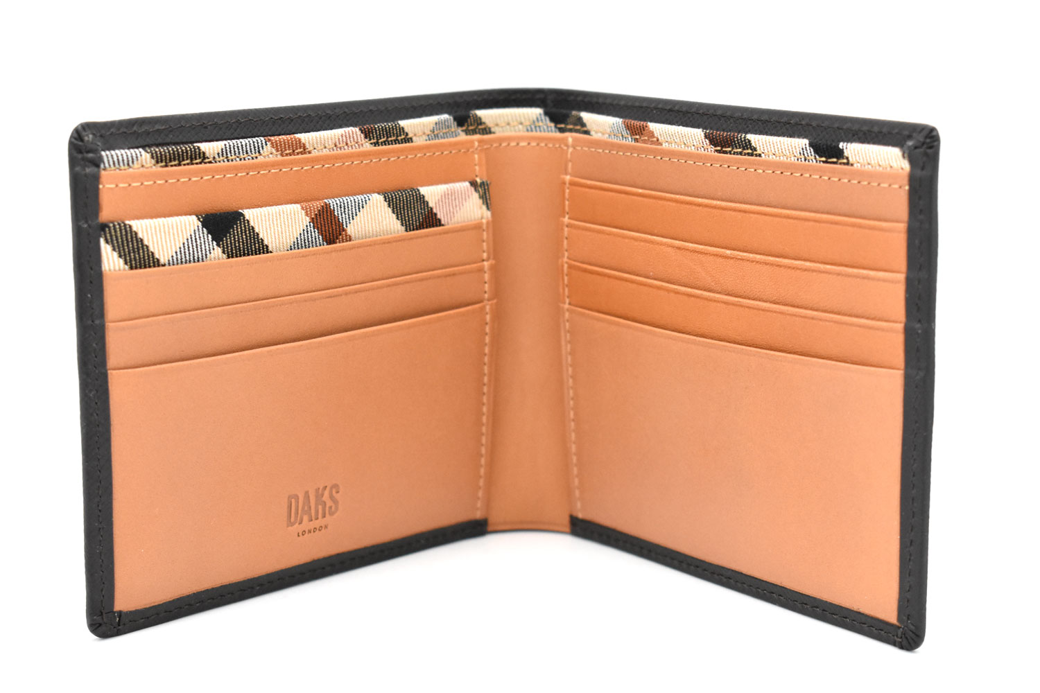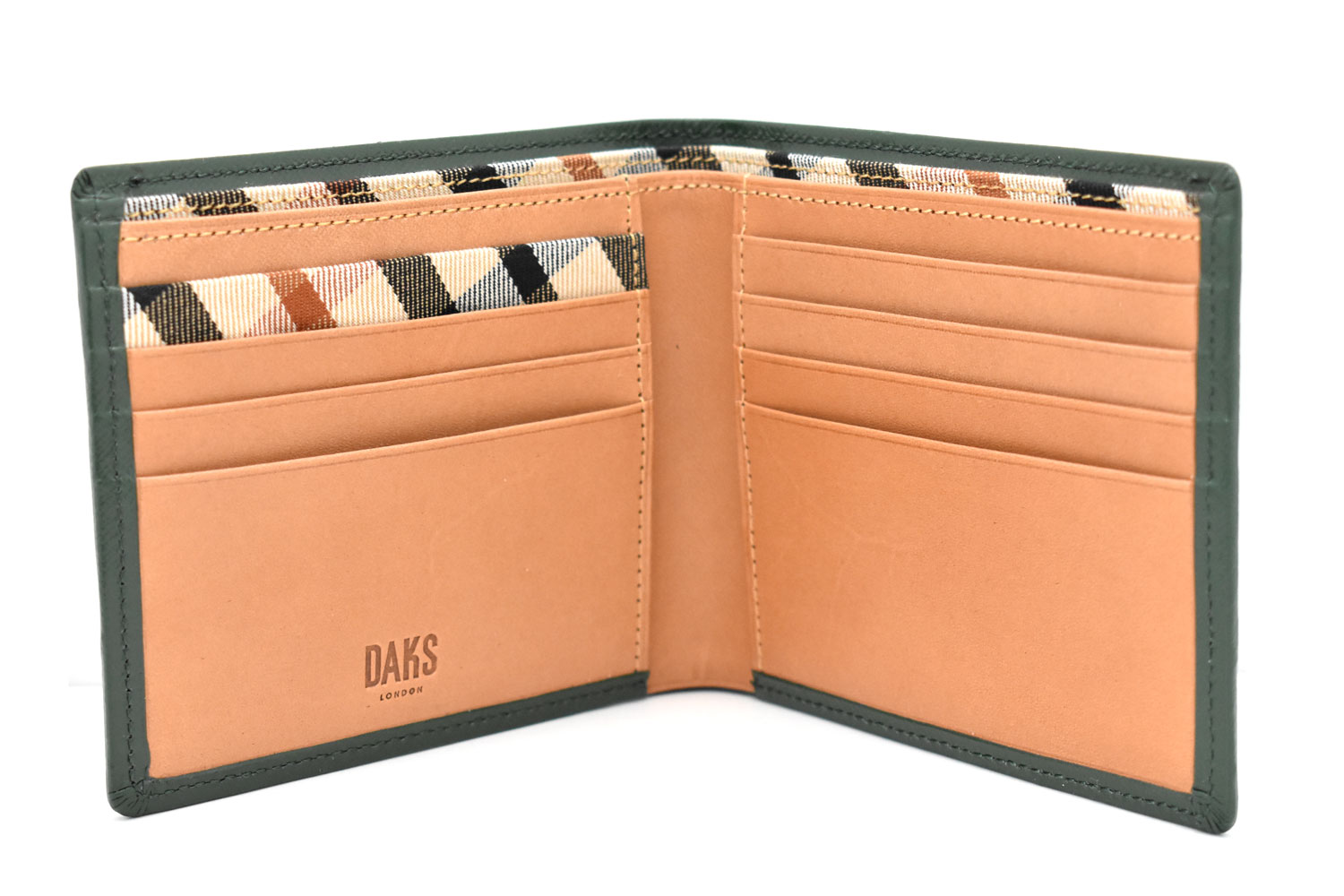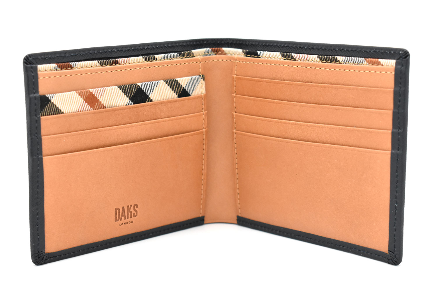 カード段の一部、札室の仕切りにはダックス伝統のハウスチェック柄の生地を使用。さりげない隠れたおしゃれを演出しています。