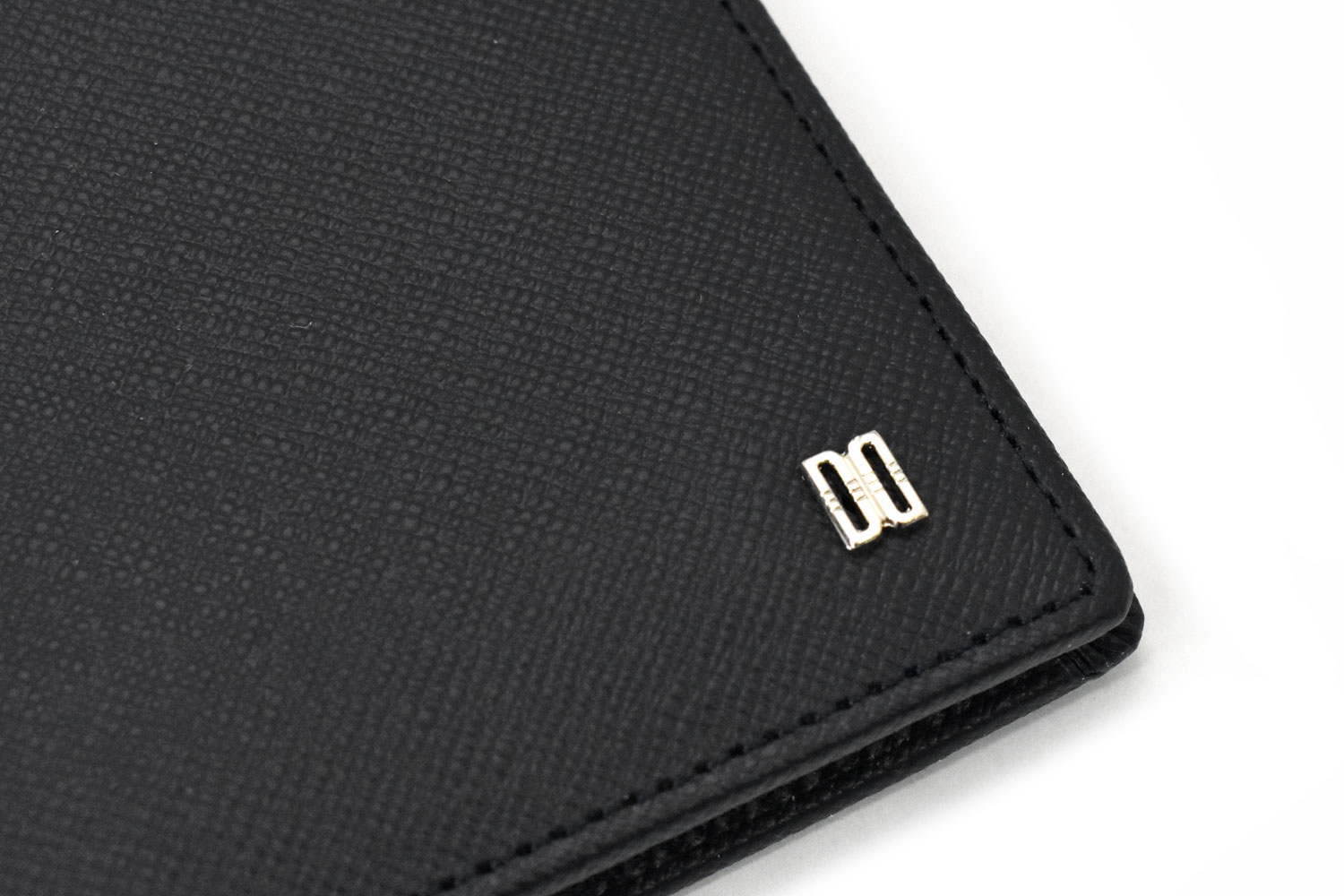 表のワンポイントブローチはダックス伝統のDDマークを金具のブローチにして配置。型押しのシャープなイメージとメタルのクールなイメージが、全体をスタイリッシュな印象にしています。