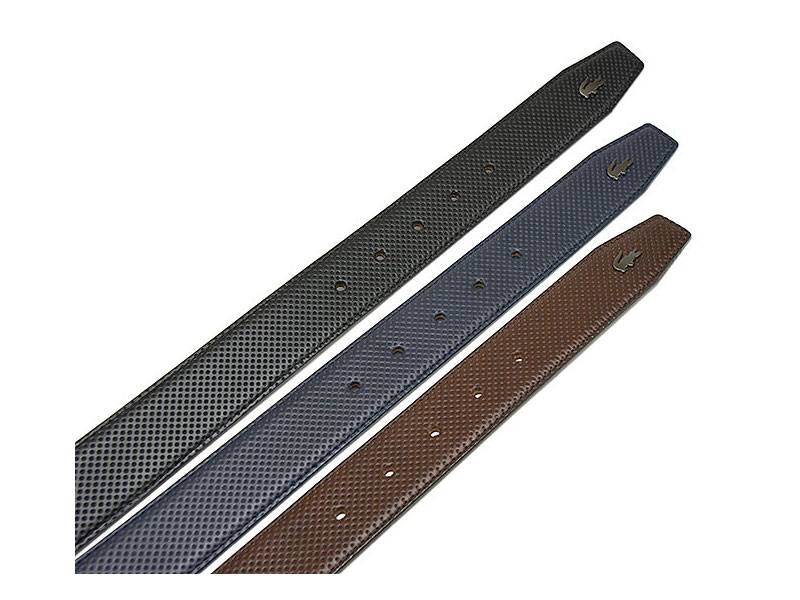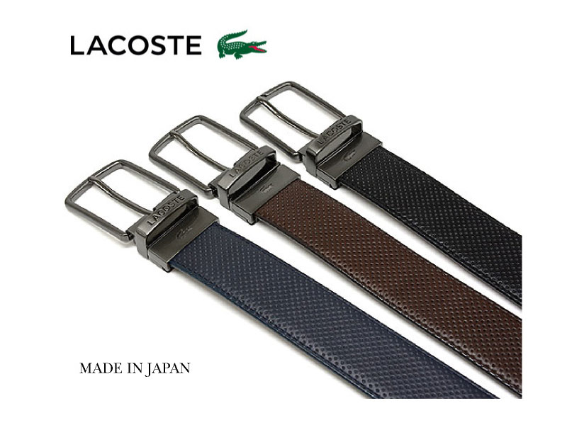 ビジネスにもカジュアルにも使える牛革リバーシブルベルトです。ビジネスシーンにはスムースな革を表に。カジュアルシーンにはスポーティなパンチングの型押しを表にコーディネートできます。ラコステらしくワニのマークがワンポイントに入っています。