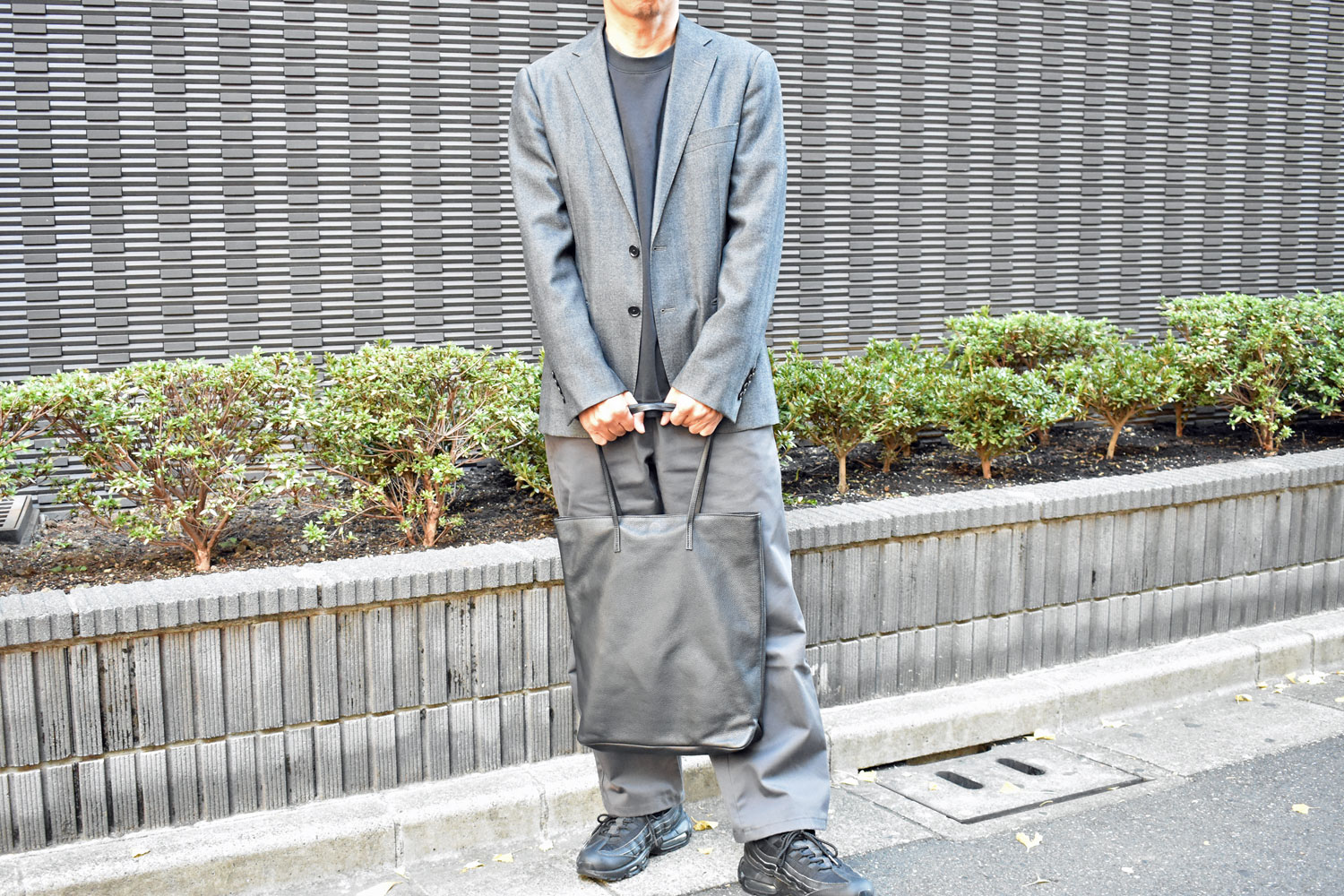 カチッとしたビジネストートではなく、ゆったりと、ざっくりとしたトートバッグ。ジャケットパンツスタイルやカジュアルコーデによく合います。