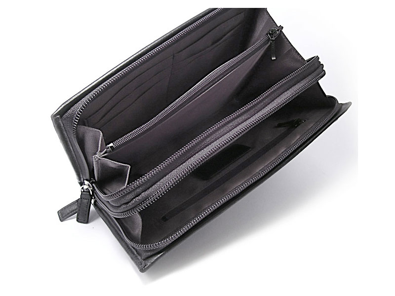 使い勝手の良いダブルファスナーのショルダーポーチです。普段使いから旅行のお供まで幅広く使うことができます。外側には前面にファスナーポケットが取り付けられています。Wファスナーの一つのポケットの中はファスナーポケットで2室に分けられていますので仕分けなどに便利です。