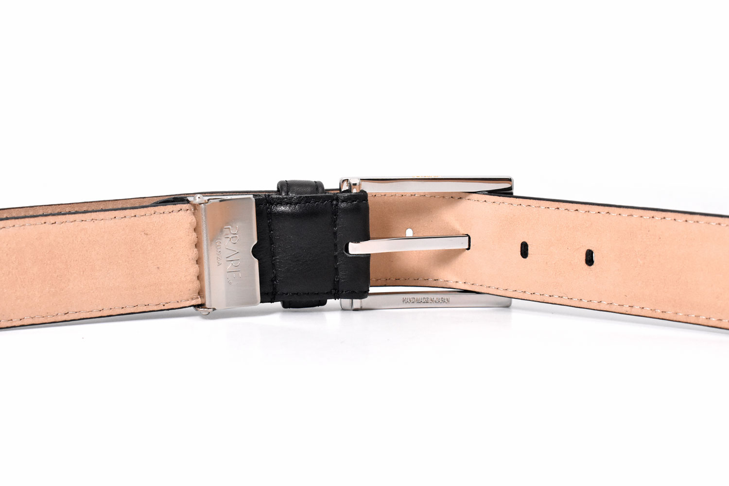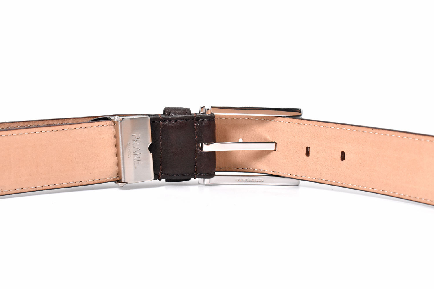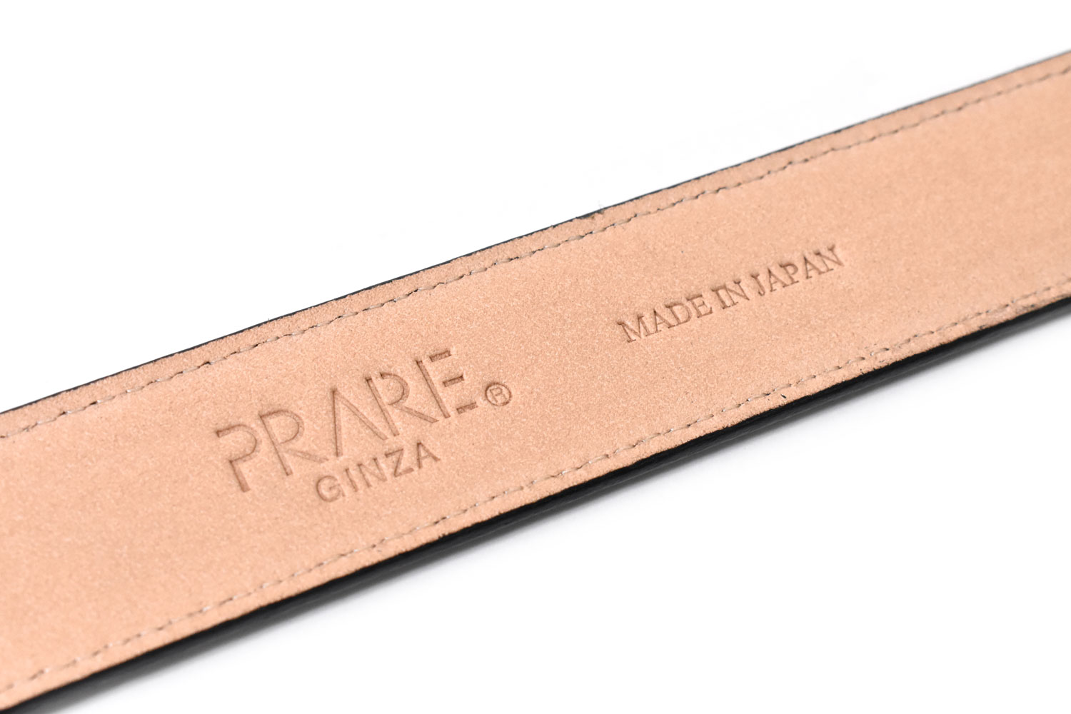 裏面にはヌメ革を使用。プレリーのロゴとMade in Japanの刻印がきれいに施されています。