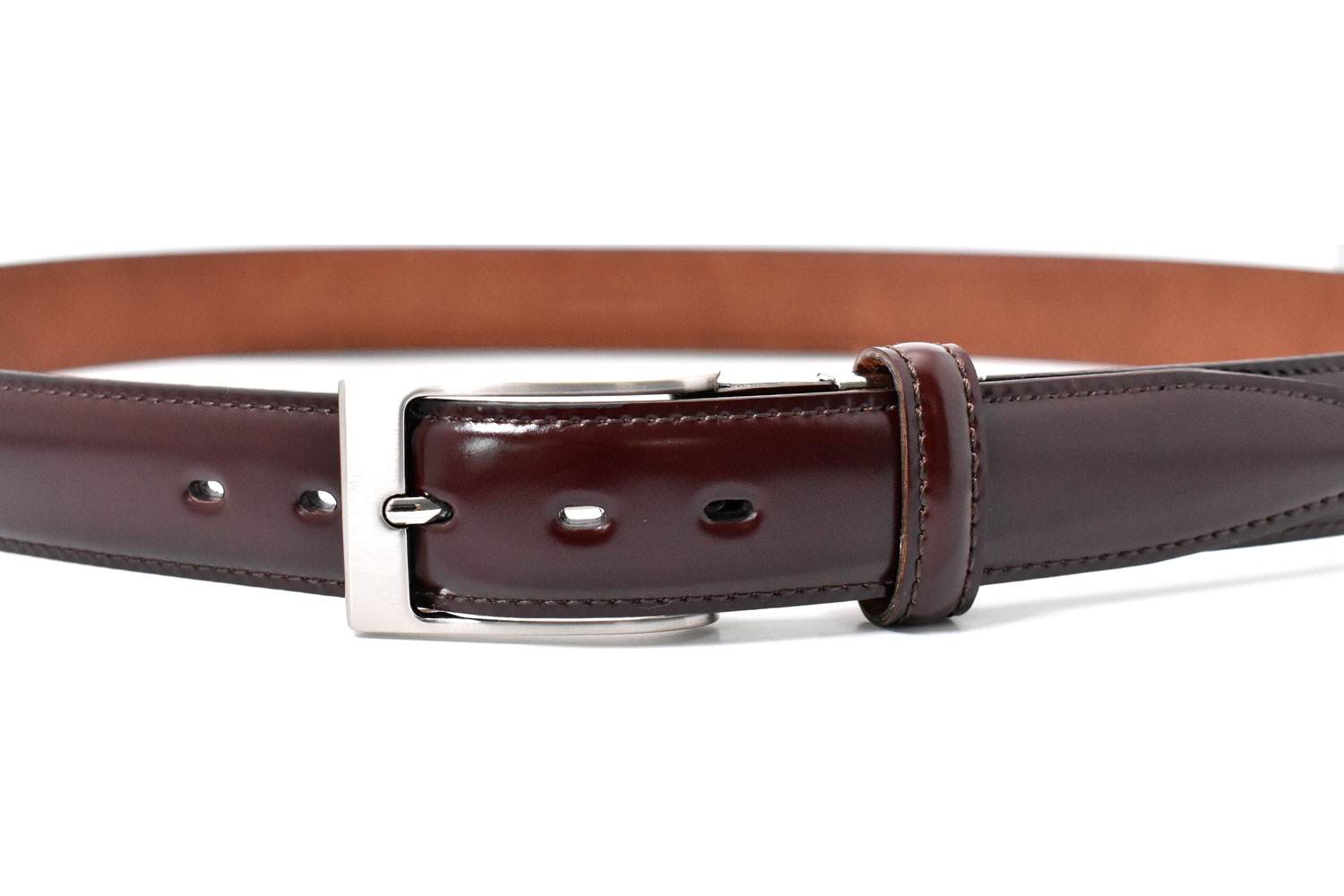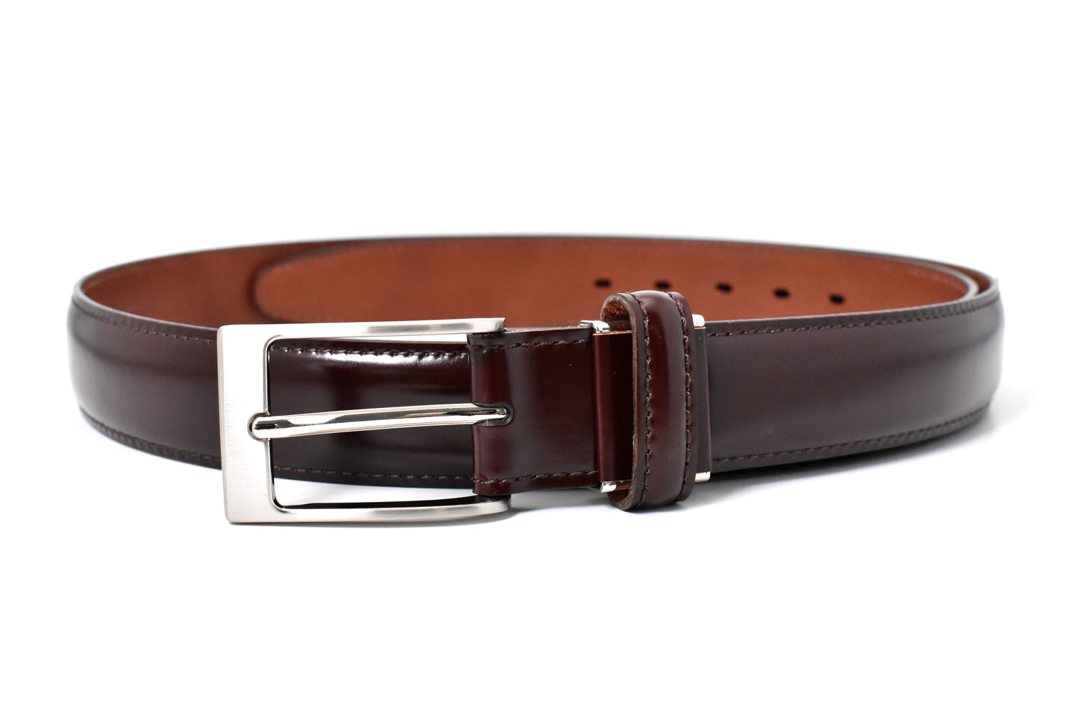 希少性の高いコードバンベルトのロングサイズです。コードバンの上品な光沢を活かし、バックルもマットなシンプルな作りにしてあります。ビジネススタイルには合わせやすい逸品です。