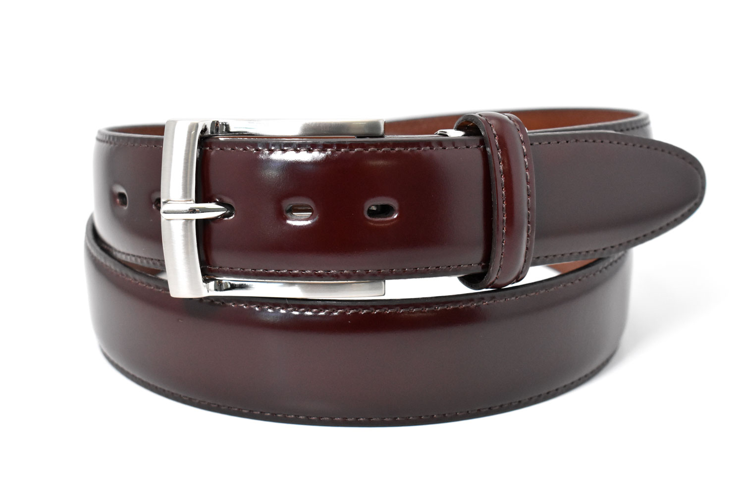 ■コードバン メンズベルト 35mm幅 「プレリーギンザ」 NB15324 バーガンディ