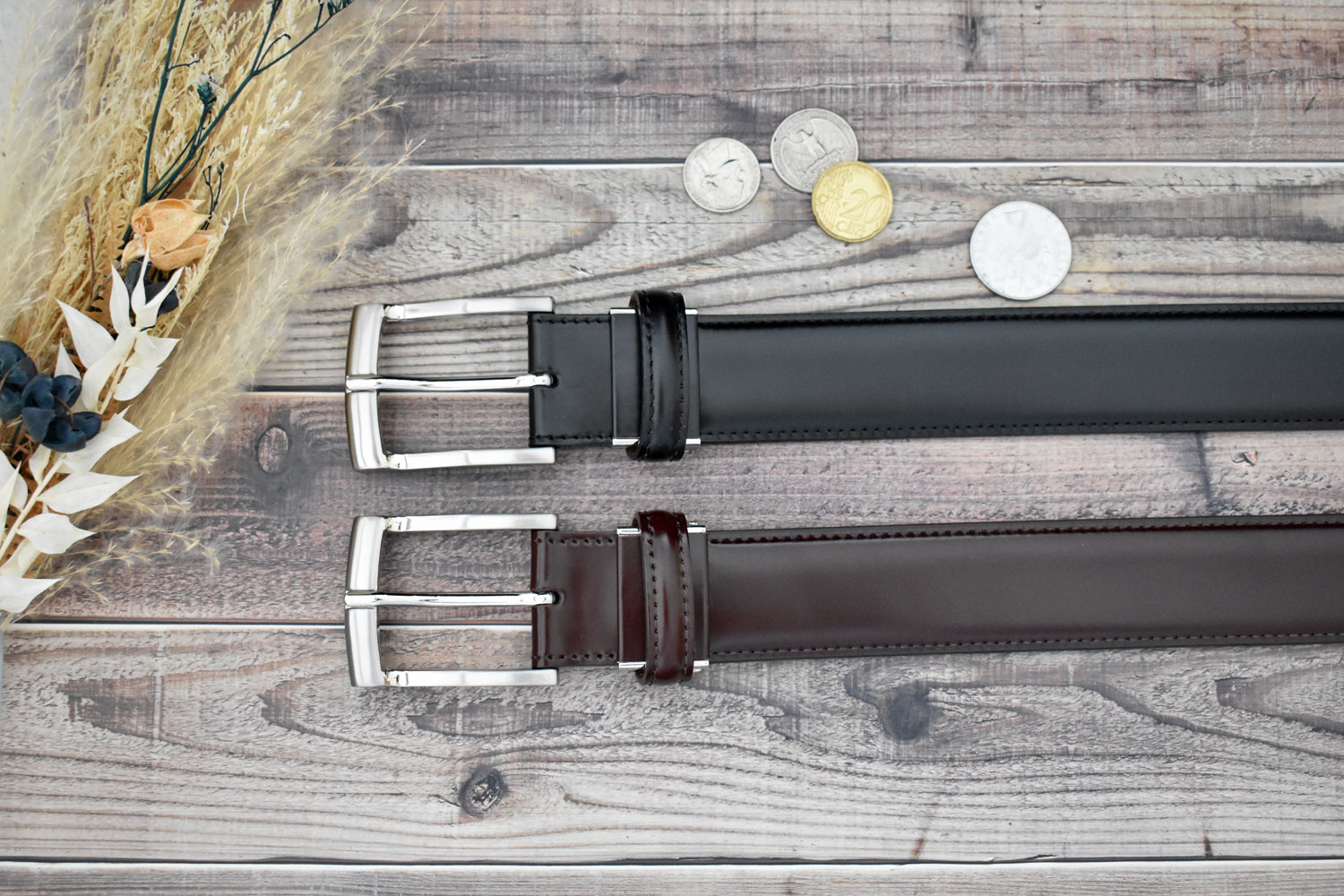 希少性の高いコードバンのワイドサイズ35mm幅のベルト。コードバン革は繊維構造が緻密で、強度の高い上質素材として珍重されています。 馬の臀部からわずかしかとれない希少性に加えて、しなやかで堅牢な点が特徴です。