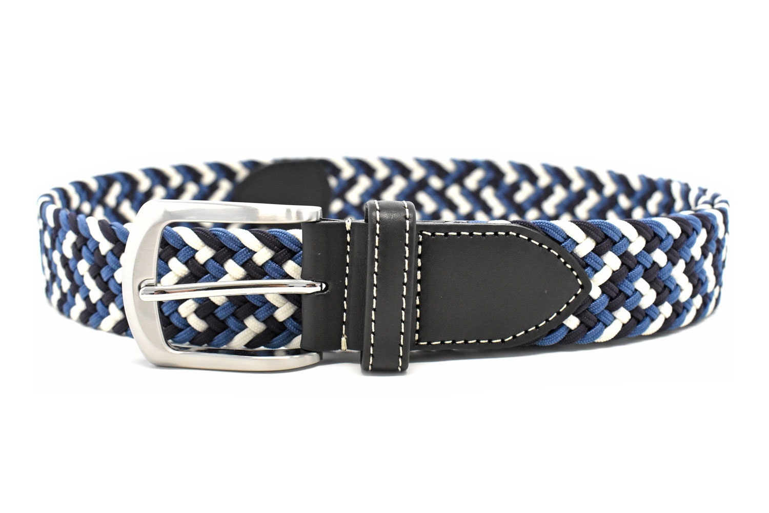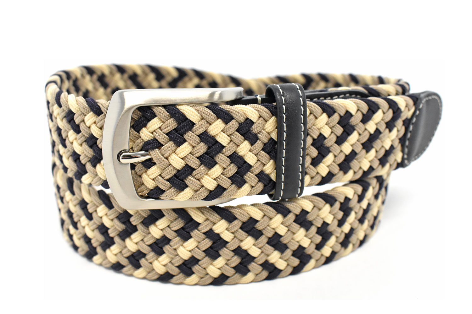 カラーコンビの全6色。伸縮性のあるゴム糸を編みこんだ、動きやすいベルトです。35mm幅のカジュアルに合わせやすいベルトです。