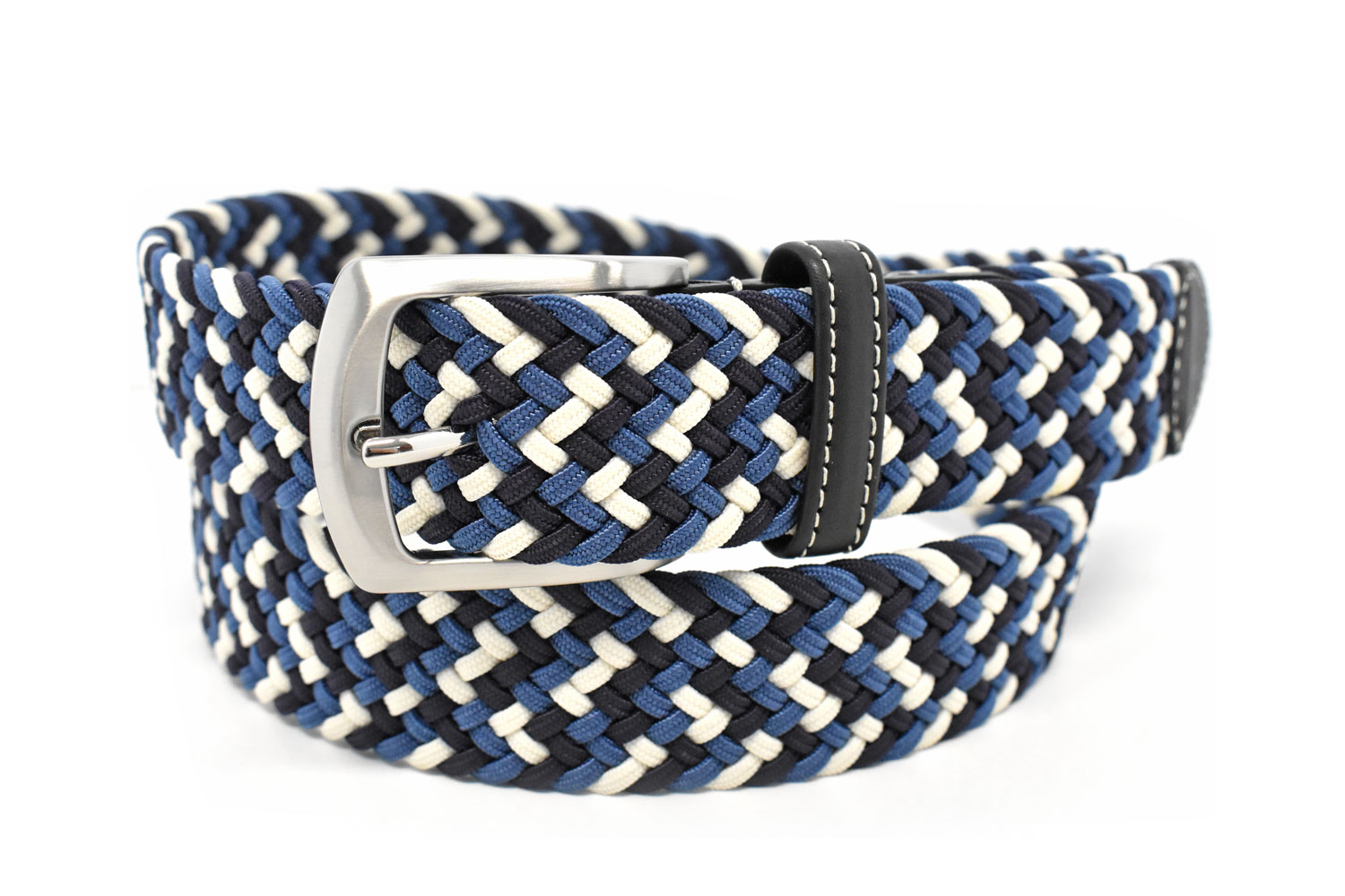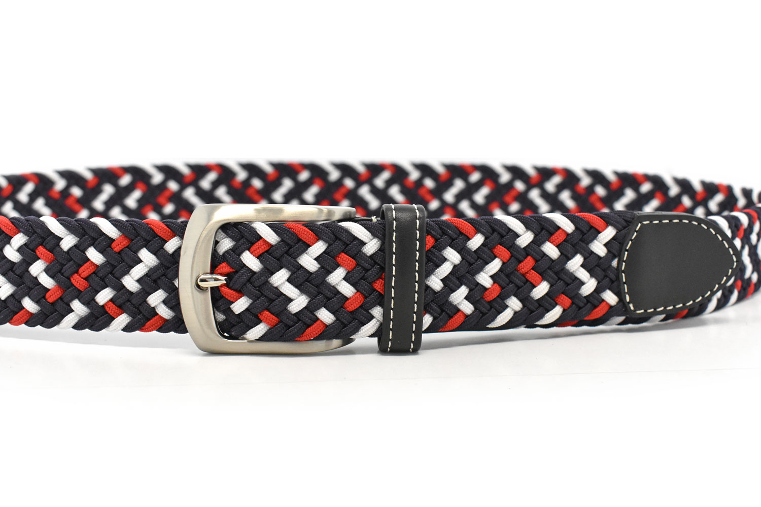 異なる色を編み込んだゴムメッシュベルト。バリエーションは6色。カジュアルスタイルによく合います。
