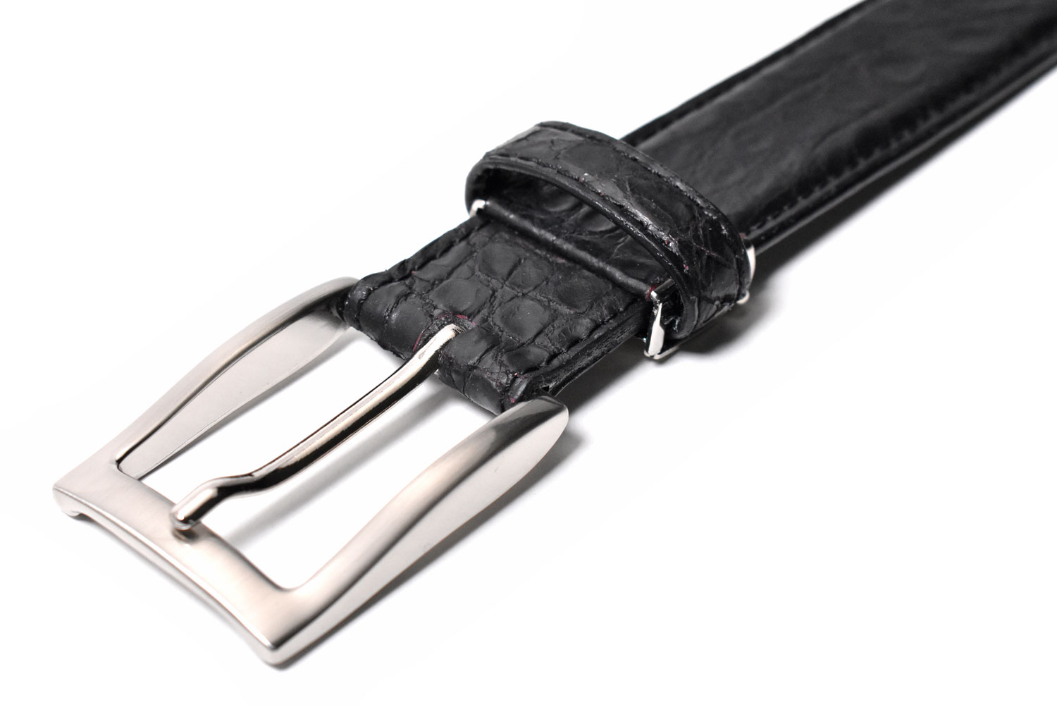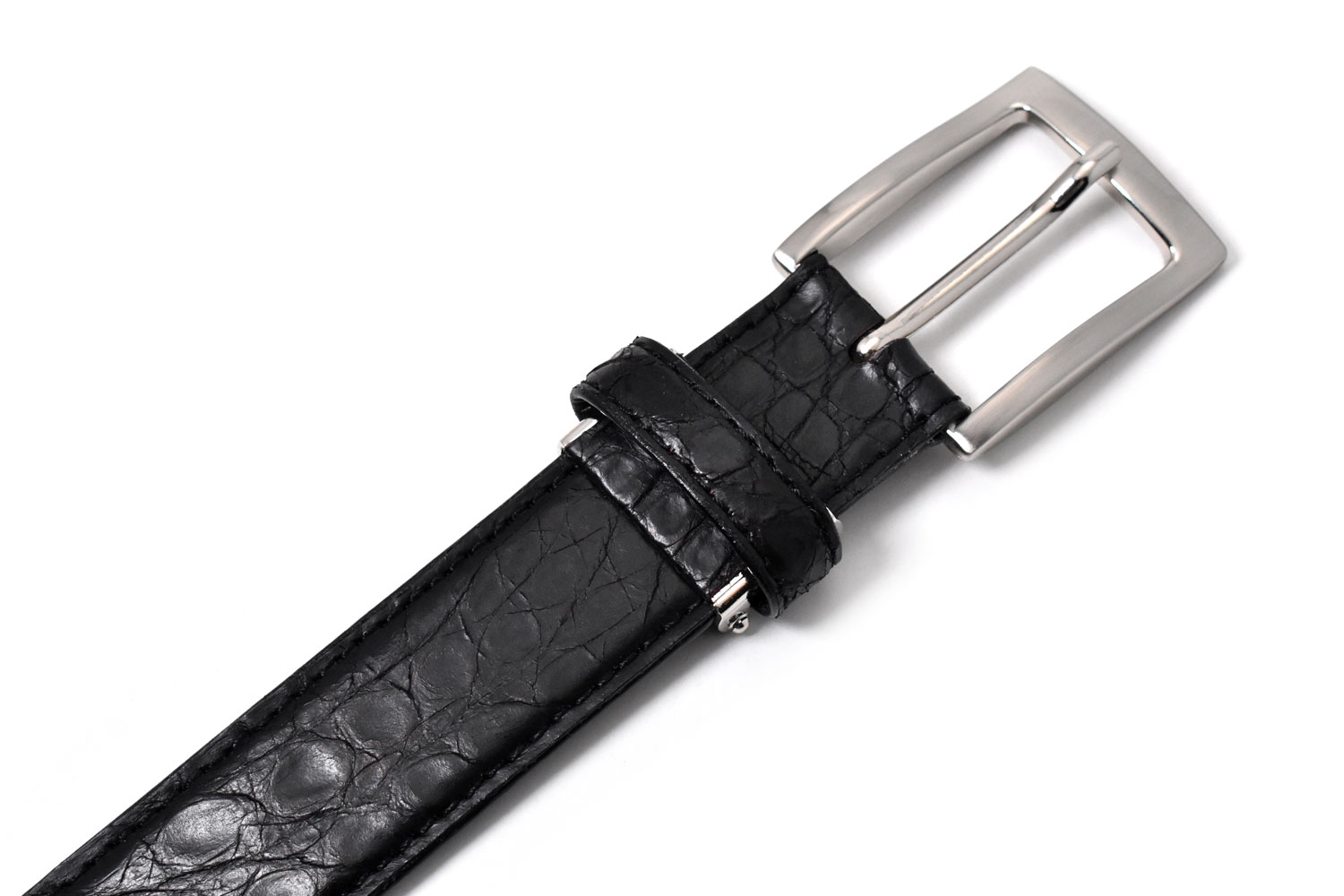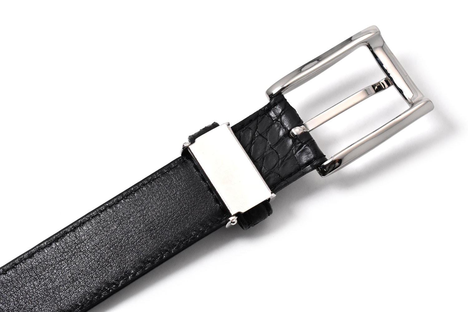 ■クロコダイルレザー メンズベルト 30mm幅 「プレリーギンザ」 NB87350 ブラック