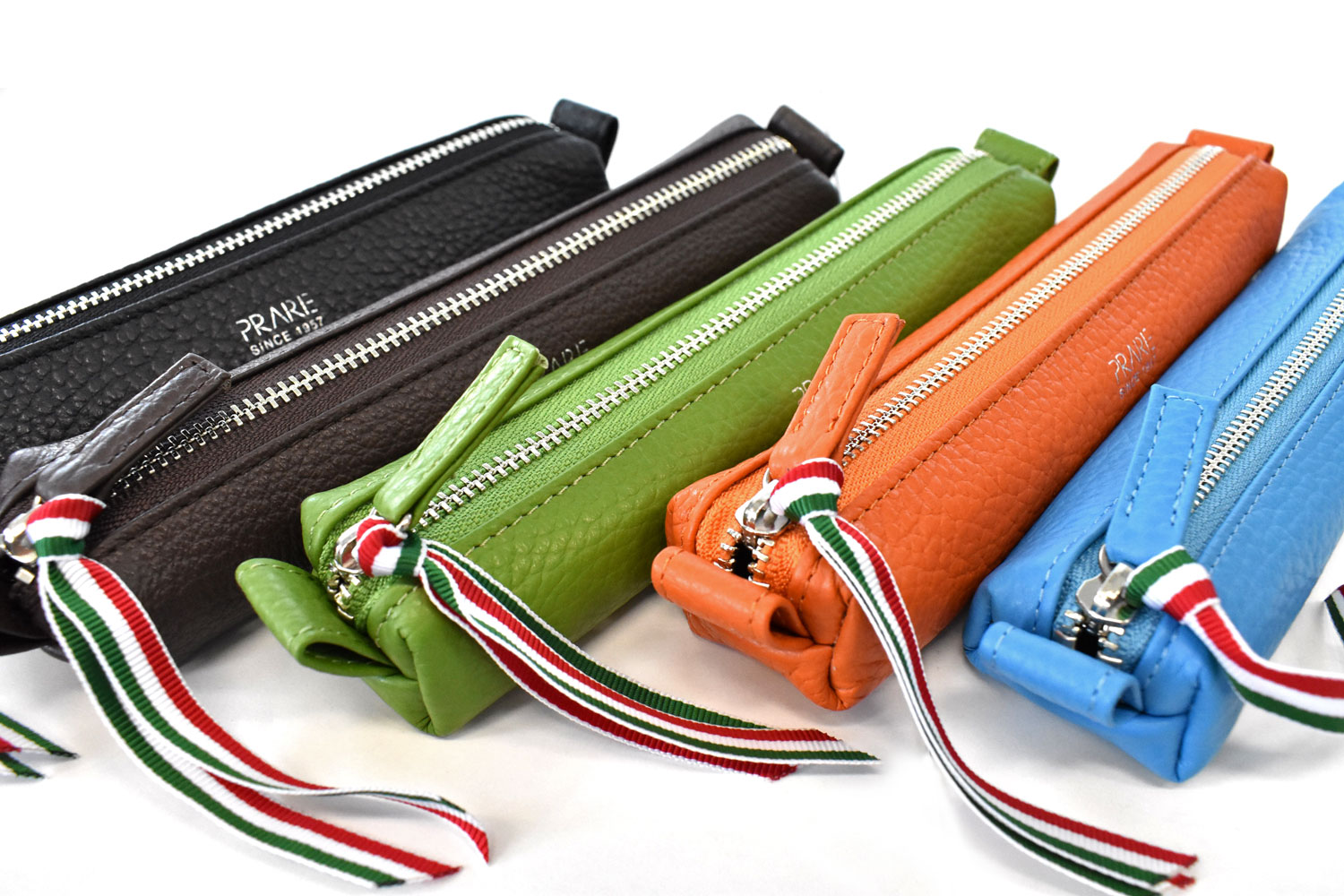 カラフルな色合いが楽しいレザーペンケース。発色の良いイタリアンレザーを使用しています。