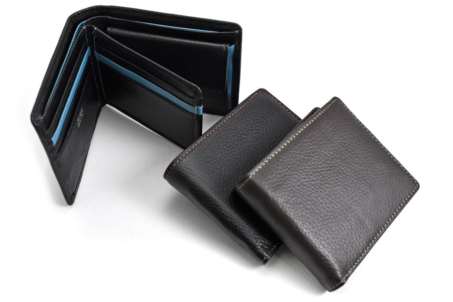 定番の二つ折り財布の形に中ベラを付けた、収納力UPの二つ折り財布。