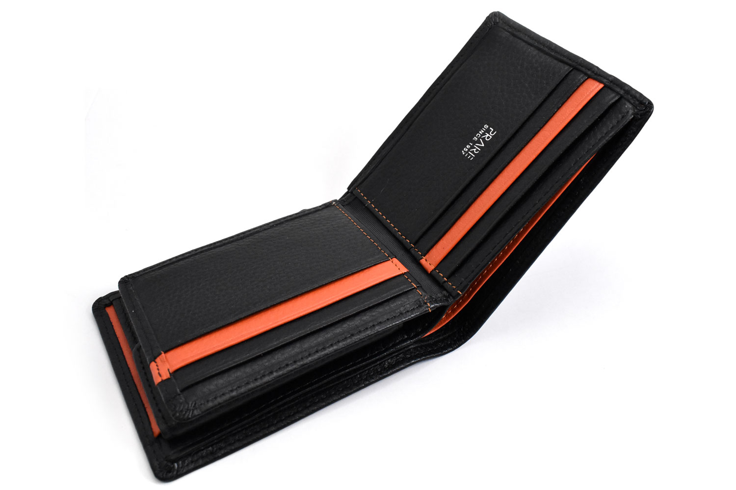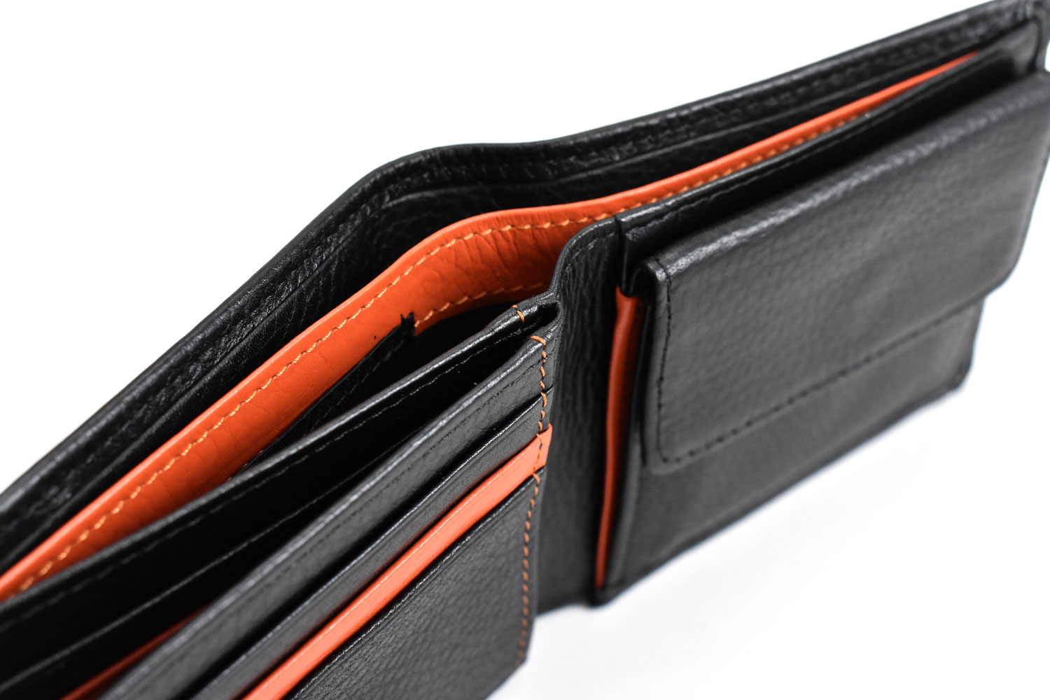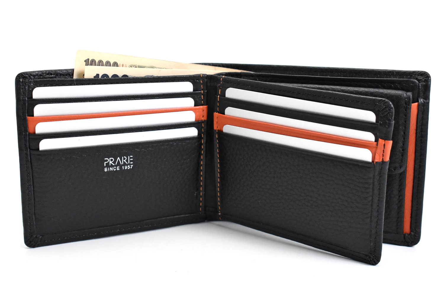■NewPeople(ニューピープル) 中ベラ付き二つ折り財布(小銭入れあり) 「プレリー1957」 NP15395 ブラック/オレンジ