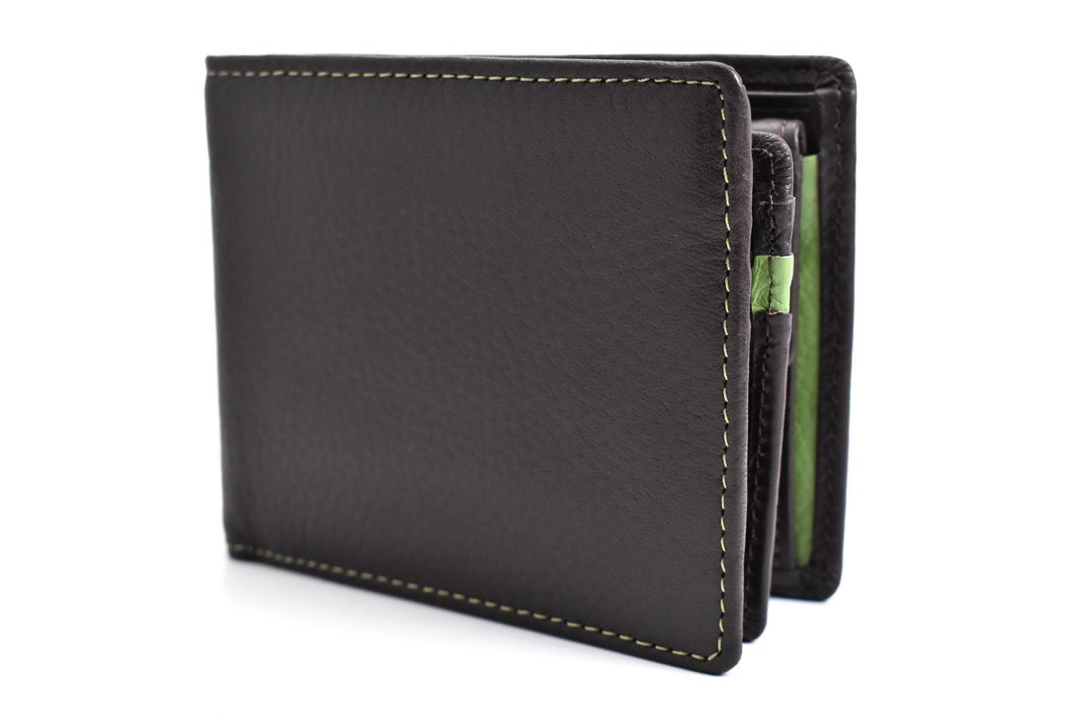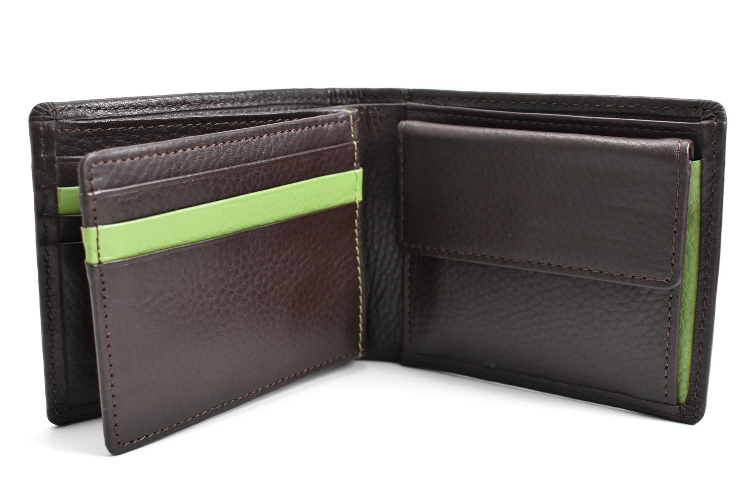 ■NewPeople(ニューピープル) 中ベラ付き二つ折り財布(小銭入れあり) 「プレリー1957」 NP15395 ダークブラウン/グリーン