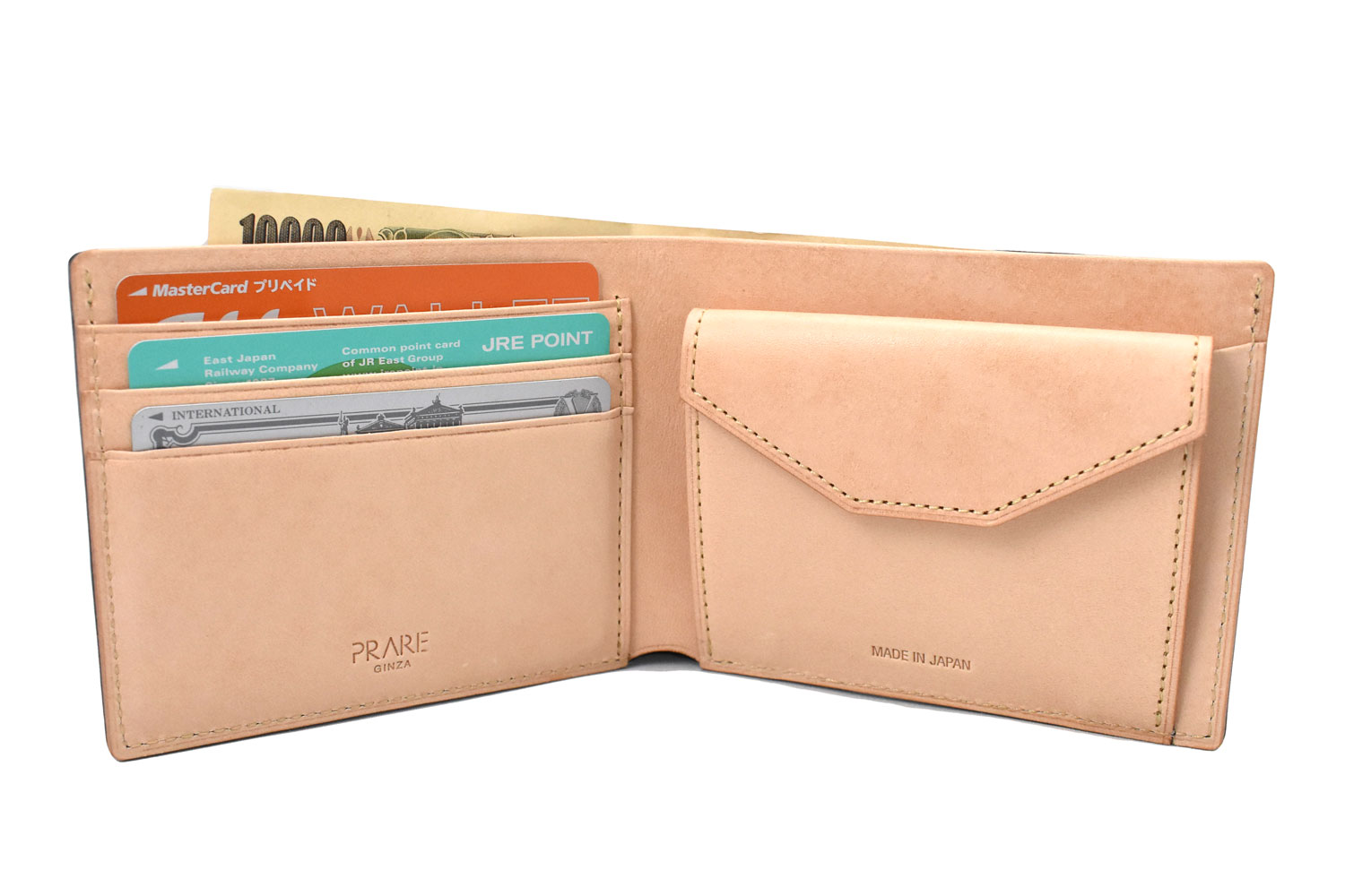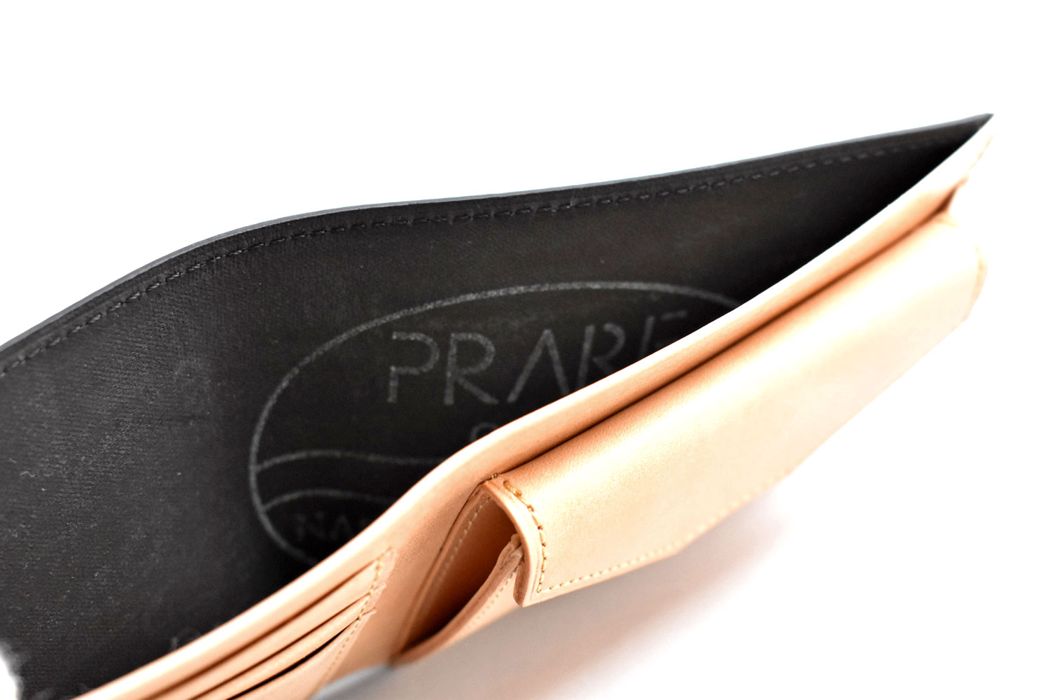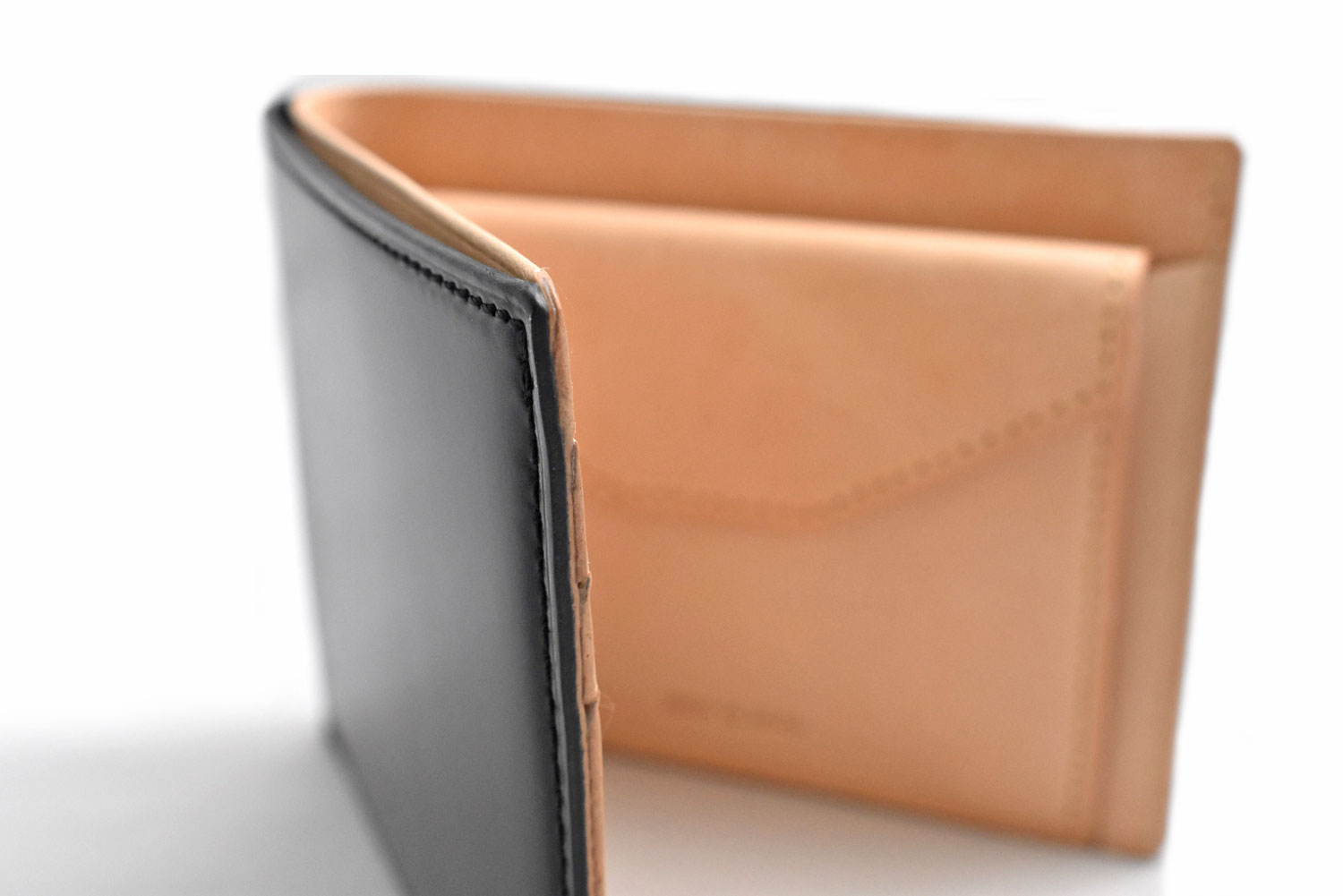 今回のシリーズは、裏地を極力使用せず表、内共に一枚革の状態で製作し、薄くコンパクトな形を実現しました。内作りにはヌメ革を使用していますので、経年変化を楽しんでいただけます。