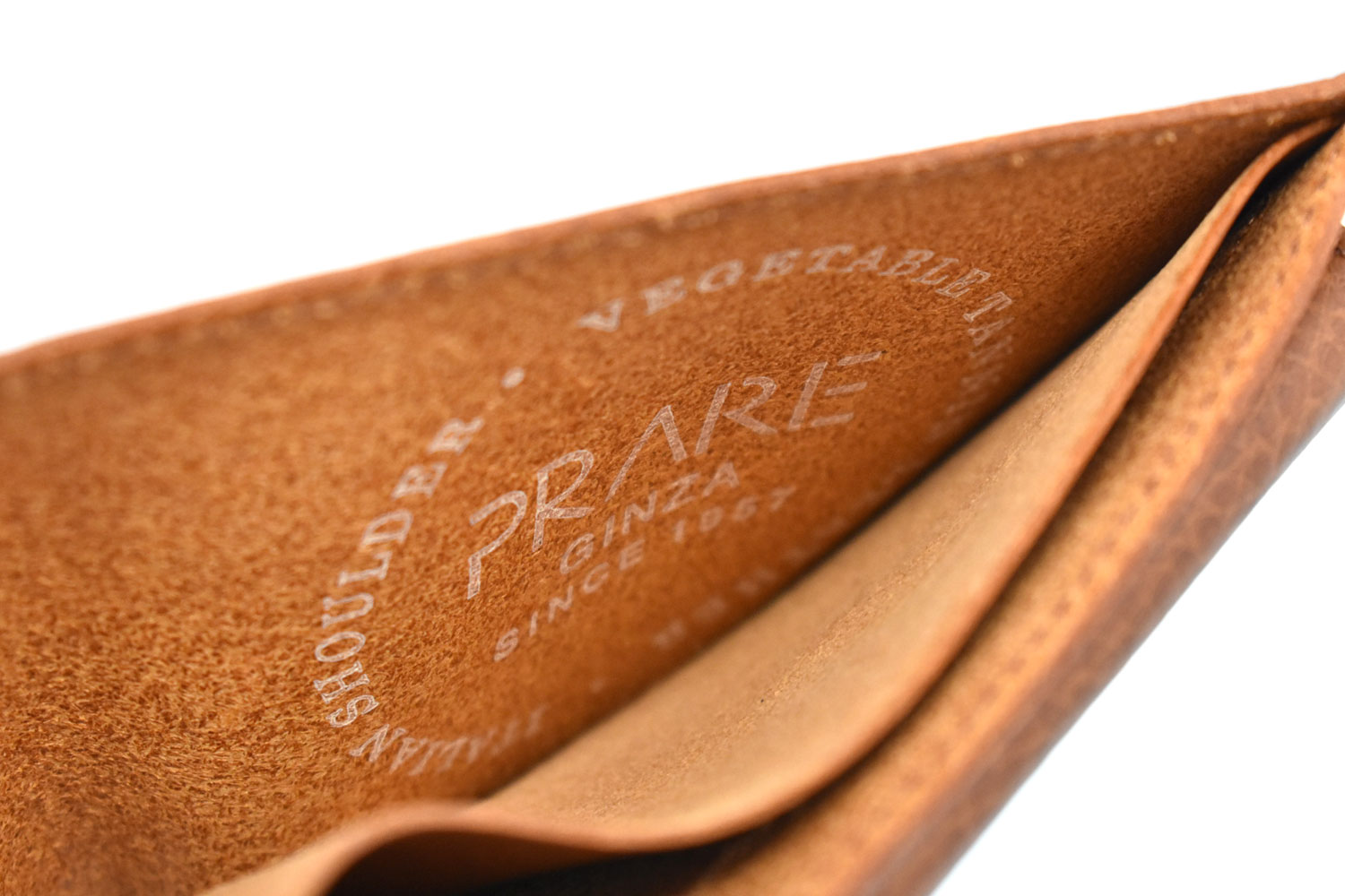 イタリアの老舗タンナー、ブレターニャ社製のフルベジタブルタンニンレザー。柔らかい感触や深みのある色、革特有のシボ(革表面の凸凹)が特徴で、経年変化(エイジング)が楽しめるレザーです。