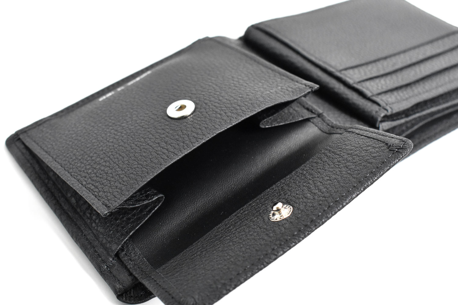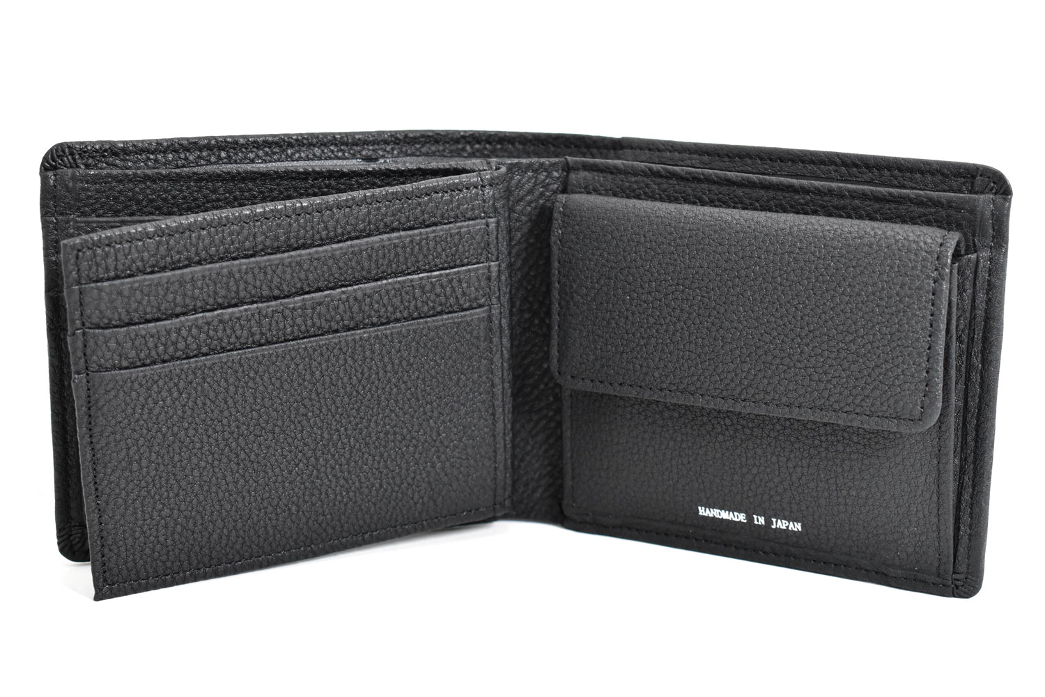 ■ソフトレザー ベラ付き二つ折り財布(小銭入れあり) 「イルクオーレ」 NP66816 ブラック