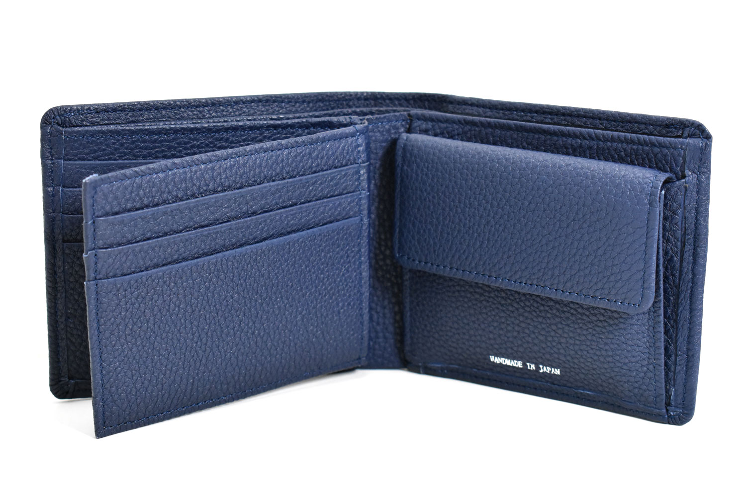 ■ソフトレザー ベラ付き二つ折り財布(小銭入れあり) 「イルクオーレ」 NP66816 ネイビー