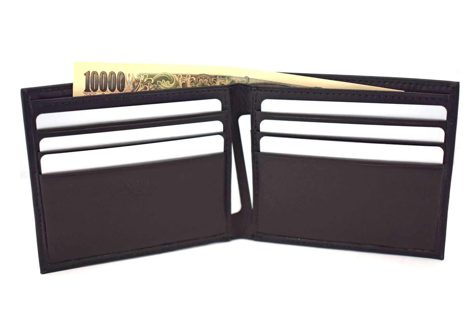 ■Glove high soft leather(グローブハイソフトレザー) 二つ折り財布(小銭入れなし)「プレリーギンザ」 NPM4514 チョコ