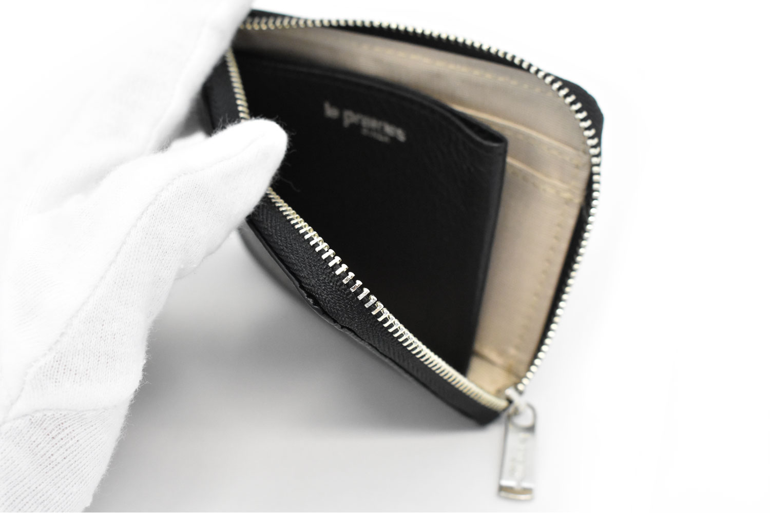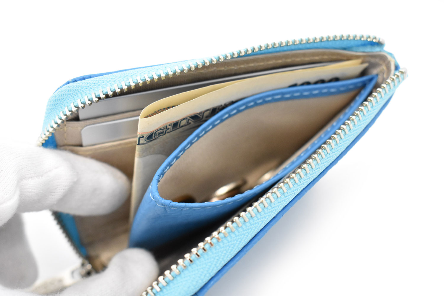 写真のようにお札も入れて、コンパクトウォレットとして使う方が多いこの形。人気です。
