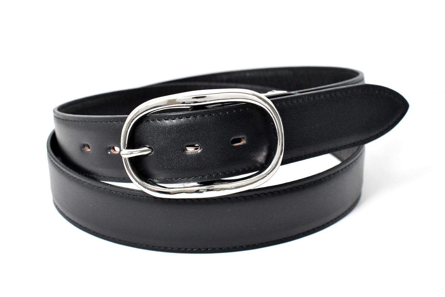 ■国産スムースレザー&真鍮バックル メンズ カジュアルベルト 「プレリーギンザ」 NB29010 ブラック