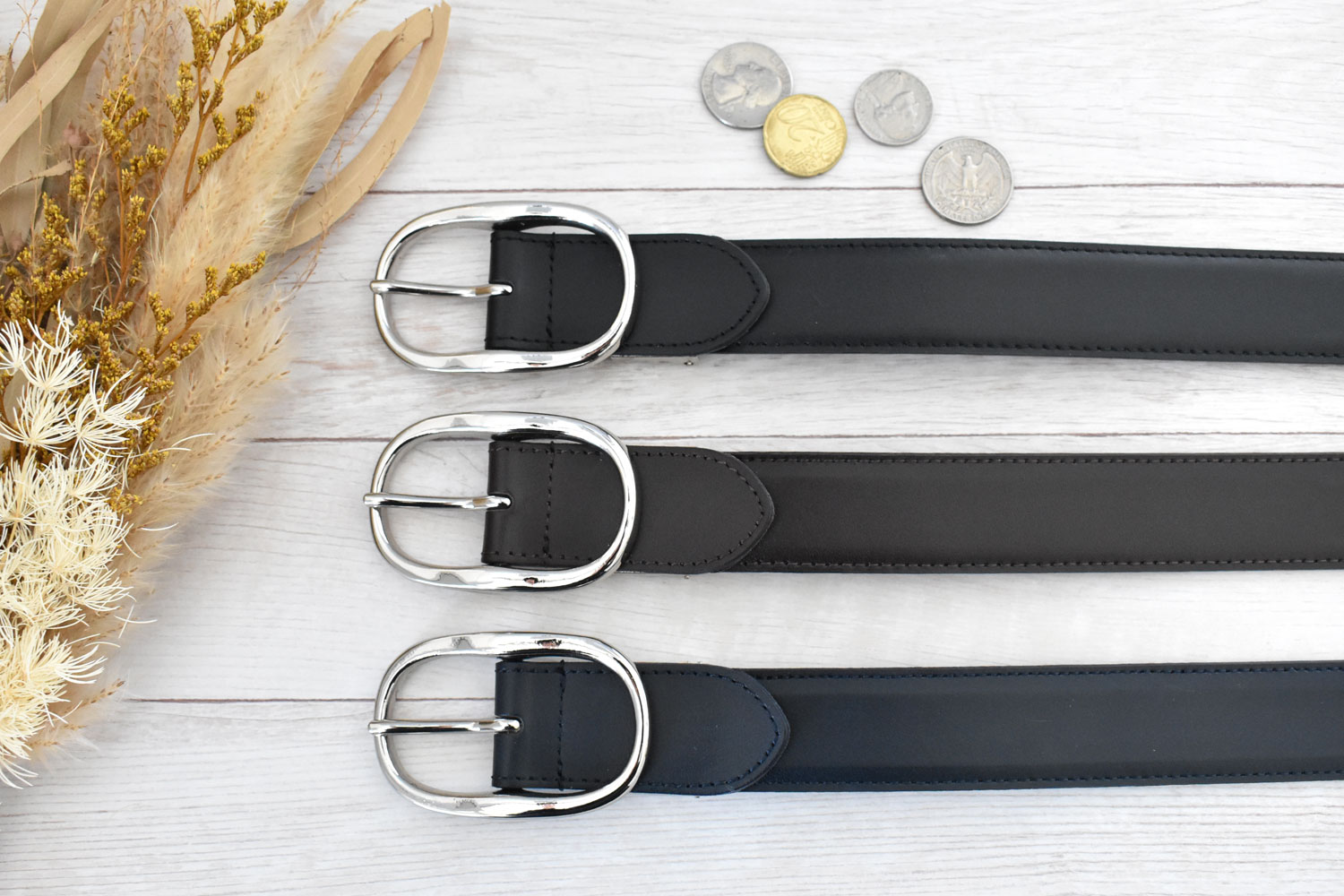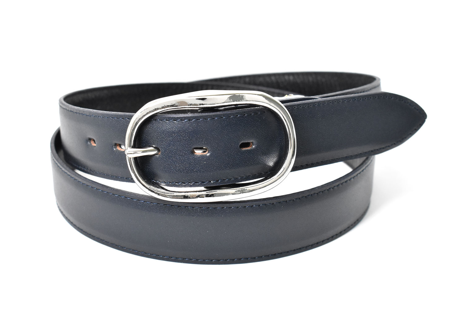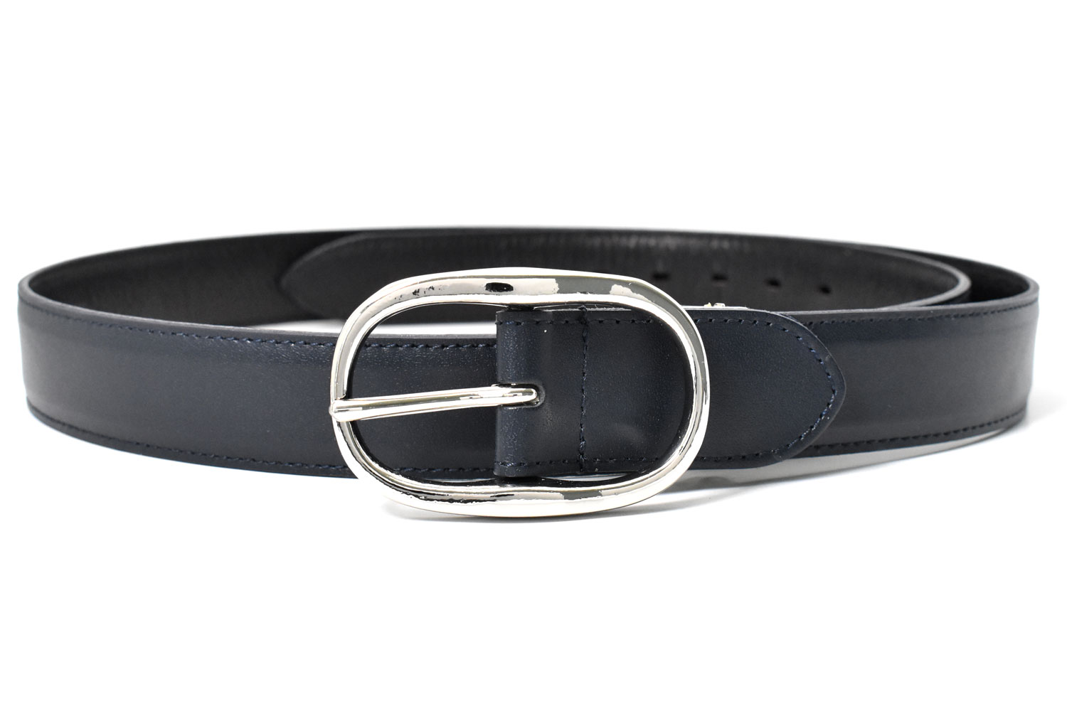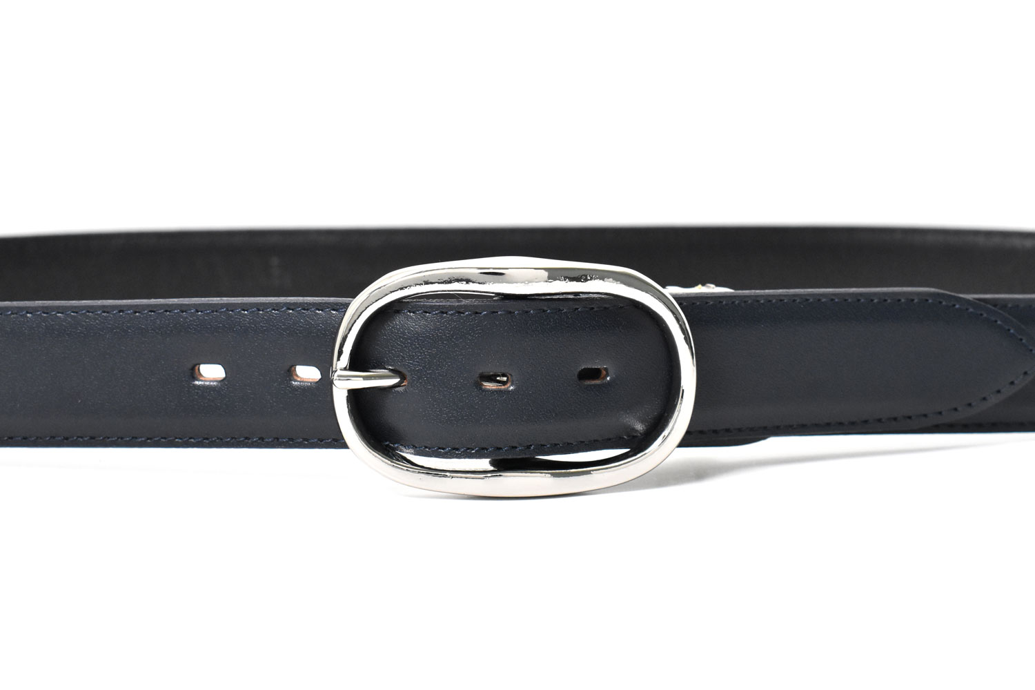 ■国産スムースレザー&真鍮バックル メンズ カジュアルベルト 「プレリーギンザ」 NB29010 ネイビー